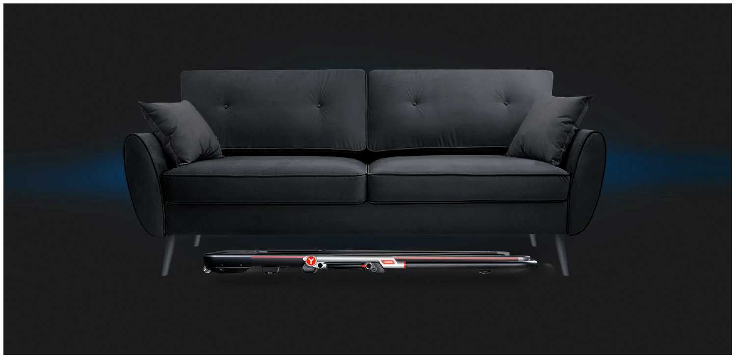 - + Стильная. Реально компактная. В сложенном состоянии высота менее 10см. Легко спрятать под самую низкую кровать. Интелектуальная - в автоматическом режиме можно управлять скоростью просто ускоряя или замедляя шаг... гуляешь как в парке. Удобный пульт