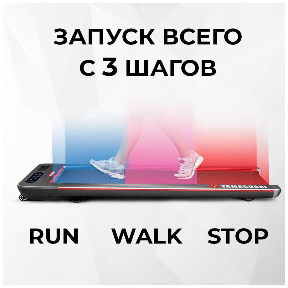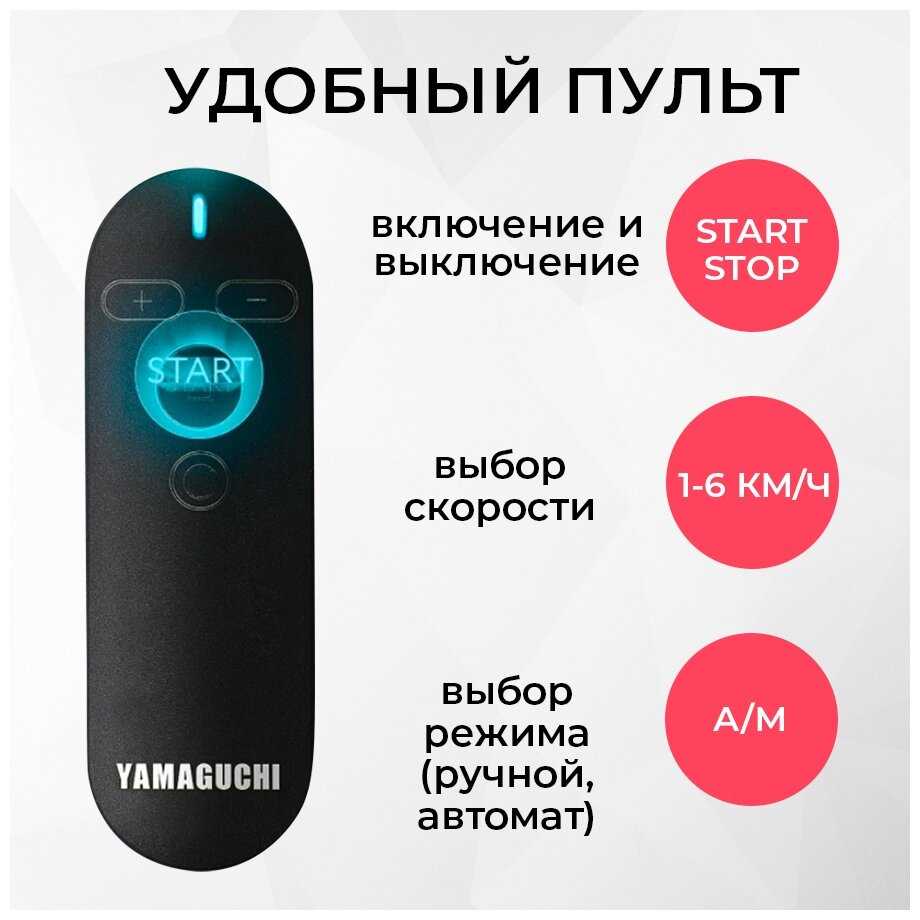 Дорожка Yamaguchi — узкоспециализированный тренажер для домашнего использования, идеально подходящий для офисных работников, пенсионеров и всех, кому критична экономия пространства. Ее ключевое преимущество — продуманная компактность: при толщине 14 см и весе 45 кг модель легко прячется под кровать или за шкаф, а встроенные колесики позволяют перевозить ее по квартире без помощи второго человека. Однако физически слабым пользователям (особенно пожилым или подросткам) передвижение может даваться тяжело — колесики оставляют следы на паркете, а для подъема в вертикальное положение требуется приложить усилие. Авторежим с регулировкой скорости под положение тела на полотне — находка для тех, кто не любит ручные настройки, но требует привыкания: при узком шаге или резких движениях датчики срабатывают некорректно, вызывая рывки.