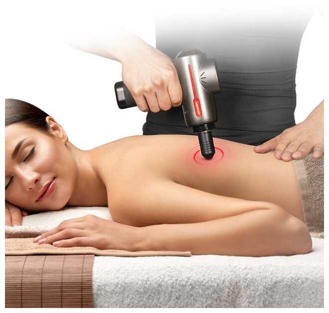 - Плавная регулировка силы нажатия: глубина проникновения до 12 мм, что эффективно для триггерных точек и крупных мышц.