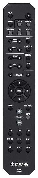 - Пульт ДУ позволяет регулировать громкость, переключать входы и настраивать баланс, включая тонкомпенсацию.
