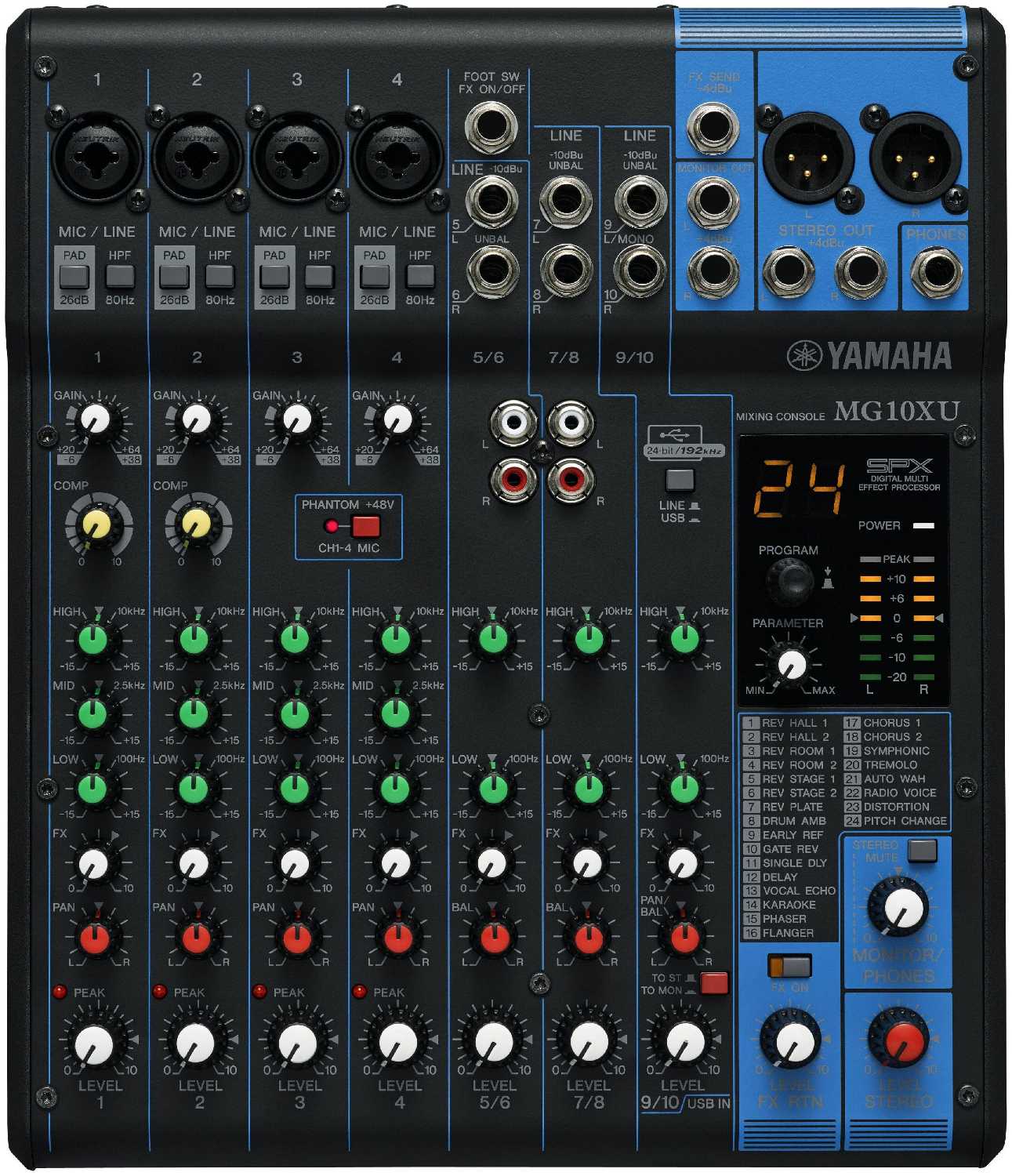 Лучший микшер для караоке, который я смог найти. Чистый вывод звука. Прекрасно работает с беспроводной системой Shure — рекомендую! Мне нравятся звуковые эффекты, применяемые к голосу: различные типы эха, эффект зала и стадиона, отлично подходит для исполнения гимнов или просто проведения праздников. Смешивает голос с музыкой на уровне студийной записи, очень органично, когда уровни настроены правильно.