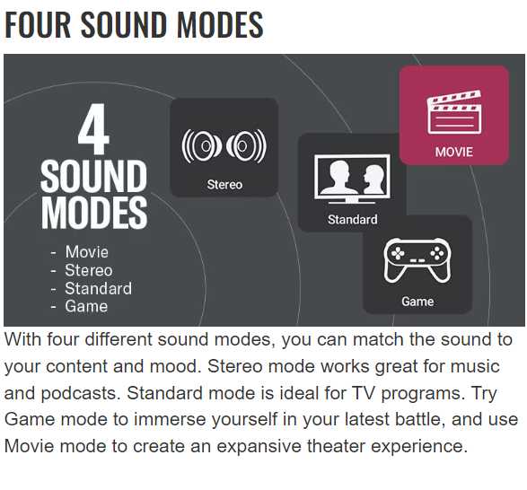 Дополнительная информация : | Режим объемного звучания: стандарт, стерео, кино, игры |