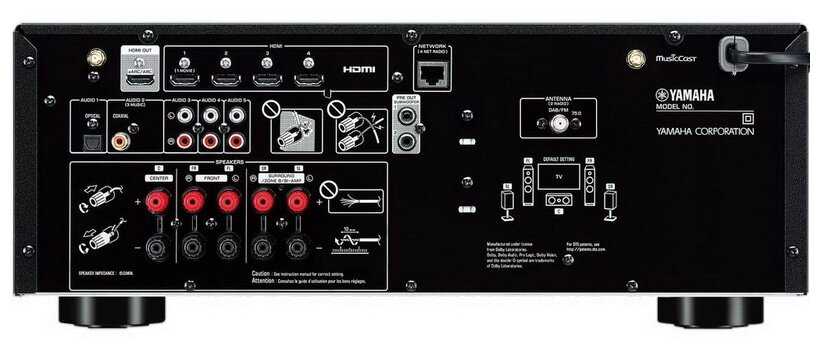 Ethernet - RJ-45, USB Type-A, вход HDMI x 4, вход аудио коаксиальный, вход аудио линейный стерео x 3, вход аудио оптический, выход HDMI, выход аудио линейный стерео x 2, выход на наушники