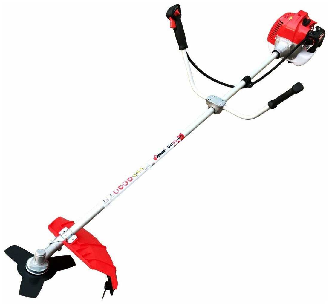 | Подробная комплектация : | инструкция на русском языке, защитный кожух, канистра для хранения топливной смеси, инструмент для сборки, 3-х лопастной нож диаметром 255 мм, триммерная головка с леской 2, 4мм., Ремень двух-плечевой |