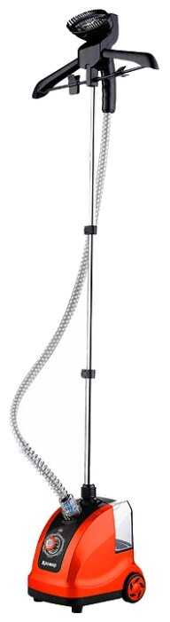 Удобный,хорошо отпаривает,вода не течет,очень компактный,но,стойка,на которой находятся плечики,какая то хлипкая.Качается.Для квартиры,заместо,гладильной доски и утюга,просто находка!!!
