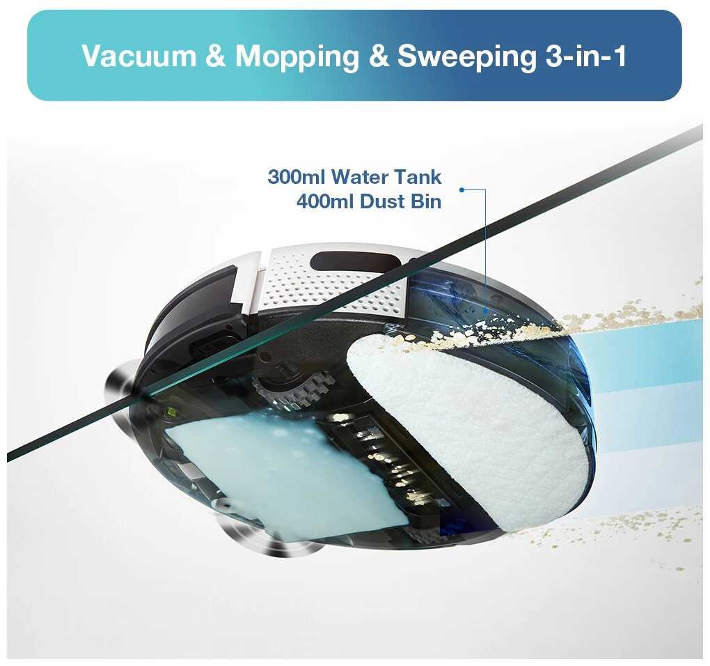 - Настройка расписания, интенсивности уборки и голосовых команд через Wi-Fi (2.4 ГГц).
