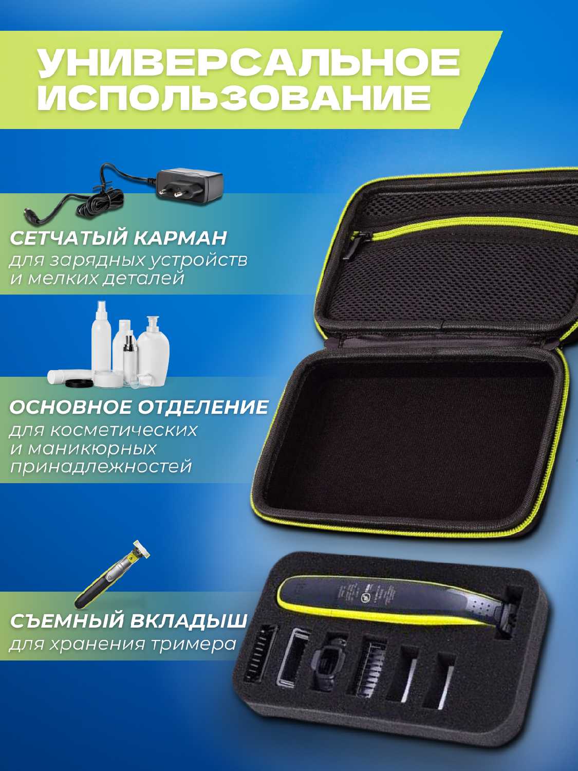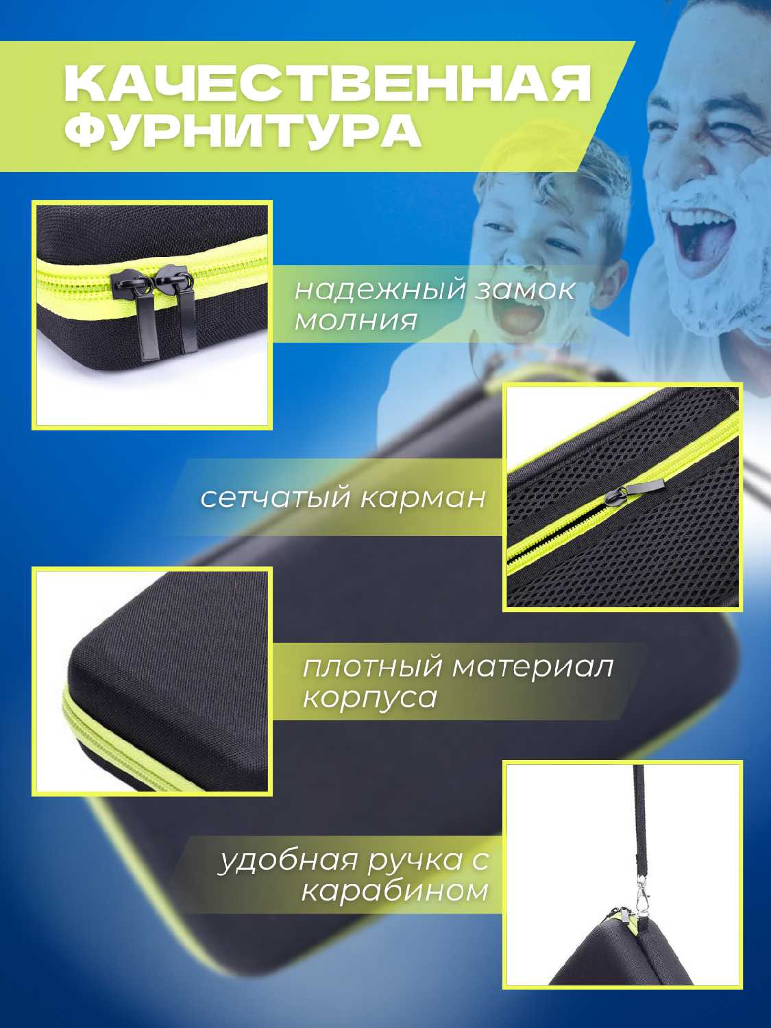 Ключевое преимущество кейса – продуманная организация внутреннего пространства. Пользователи хвалят наличие конкретных ячеек и вырезов в поролоне, предназначенных для самого триммера, сменных лезвий (или станков) и насадок-гребней. При правильной компоновке содержимое "сидит на своих местах", не болтается и не выпадает. Зарядное устройство также находит свое место, часто в отдельном кармашке или ячейке. Наличие ручки-петельки существенно повышает удобство переноски или подвешивания. Легкость кейса в наполненном состоянии также отмечается как плюс. Вместимость достаточна для стандартного комплекта OneBlade, включая зарядку.