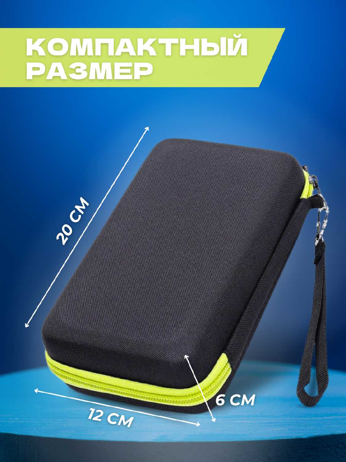 - Компактные габариты (примерно 20×15×7 см) позволяют разместить кейс в дорожной сумке без потери полезного объёма.