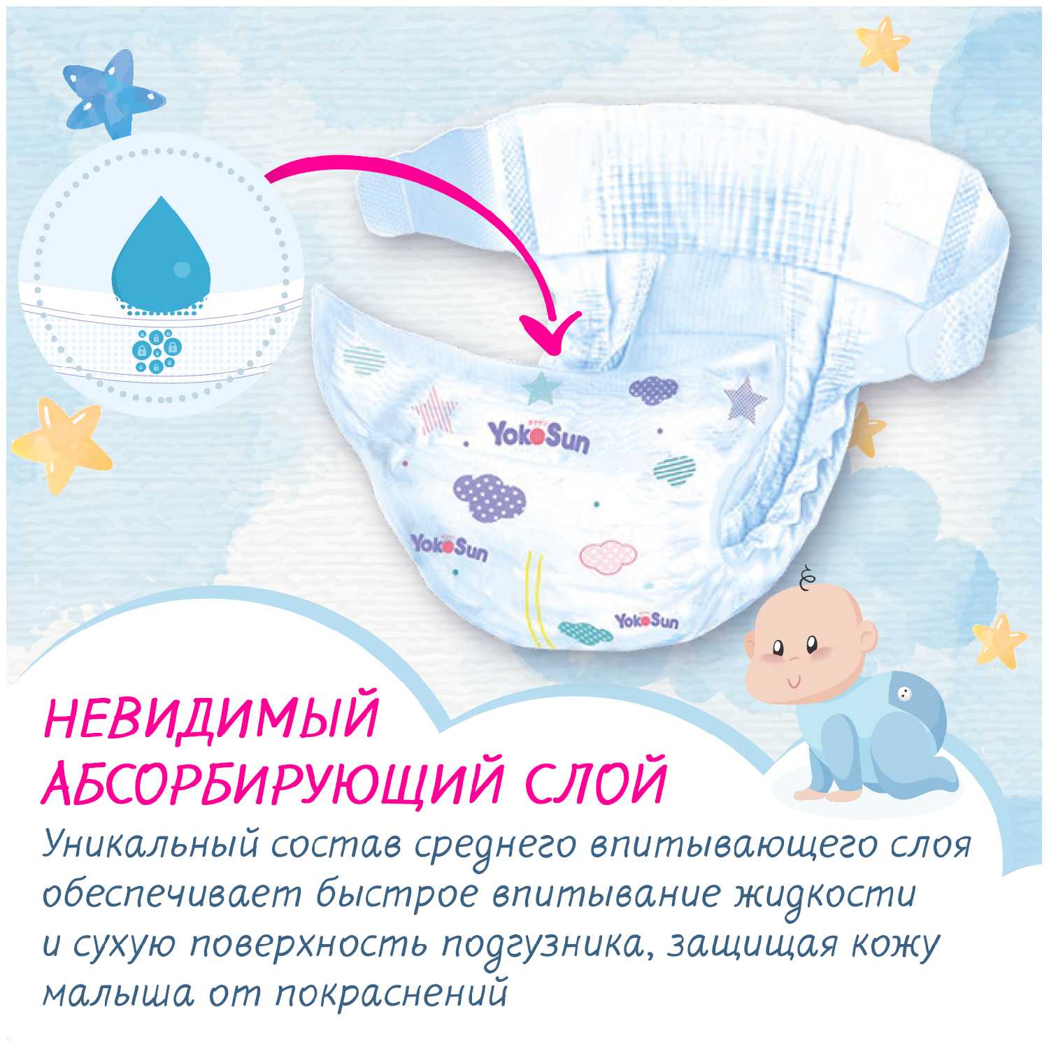 данные подгузники используем с рождением,сейчас уже перешли на тройку,.Впитывает очень хорошо, не вызывает аллергию,хватает на всю ночь,хотя с утра после ночи и можно кого нибудь прибыть.И с плюсов и ещё хочу выделить текстуры,она очень очень мягкая и приятная на ощупь, а это значит что и малышу приятно. Сейчас малышка весит 8 кг,нам подходят замечательно, но она у нас пухлинкая. Дизайн тоже очень красивый, нам очень нравится. Другие фирмы тоже пробовали, но остановились на этот фирме. Мы очень довольны, теперь мы ваш постоянный клиент.еще очень выгодно с покупками, с бонусом ,однозначно рекомендую к покупке. мне очень важно чтобы ребенку всегда была сухо и комфортно, поэтому мы выбираем подгузники "YokoSun".Следующий раз будем пробовать и трусики .Спасибо продавцу за качественный товар.