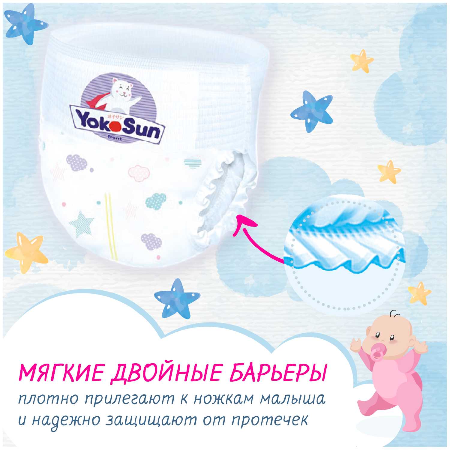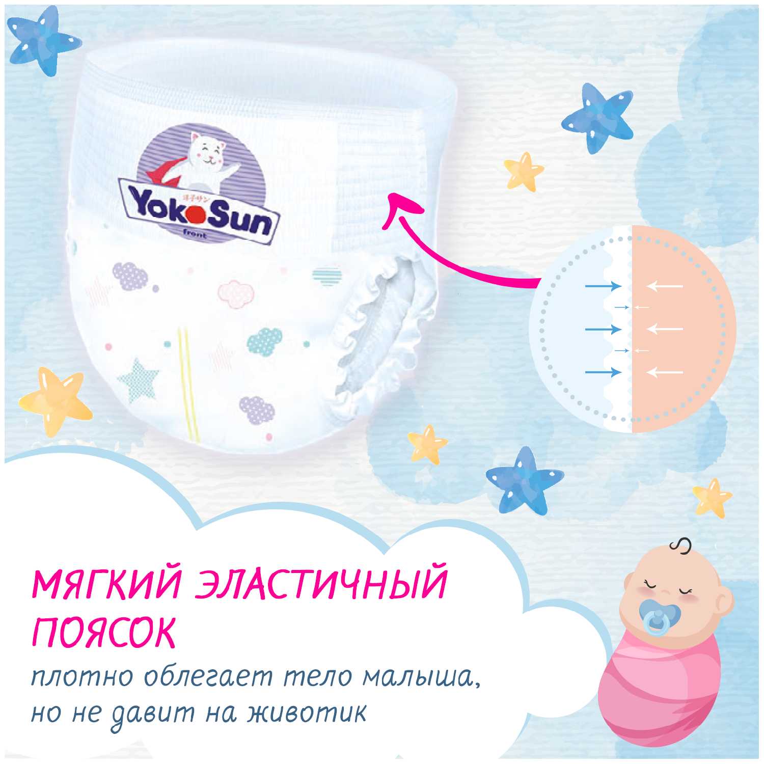 Отличные подгузники - трусики в своей ценовой категории , дешевле, чем японские аналоги, мягкие и очень хорошо впитывают. не было ни разу протечек,ночь выдерживают хорошо.Резиночки мягкие и на ножках и животике не жмут, также не сковывают движения ребёнка во сне и во время прогулки . YOKOSUN - японский бренд и зарекомендовал себя как очень качественный и довольно доступный продукт. Это лучшее для меня и моего ребёнка. Покупаем снова и снова)