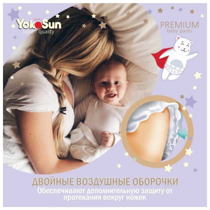 За всё время попробовали всё популярные бренды, раньше пользовались Haggis Elit Soft, но потом этот бренд ввёл новые тонкие памперсы и мы были очень разочарованы, так как подгуздники протекали и быстро становились полными и остывали на ребенке. Yoko Sun Premium оказались лучшими в своём сегменте, отлично держатся всю ночь, нареканий нет, берём их и только их.