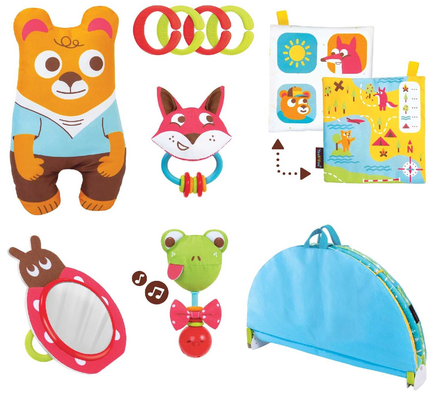 Развивающие элементы : | прорезыватель, зеркало, шуршащие и хрустящие элементы |