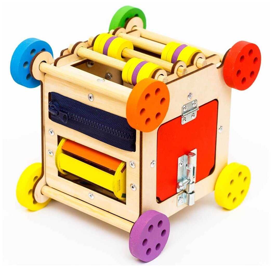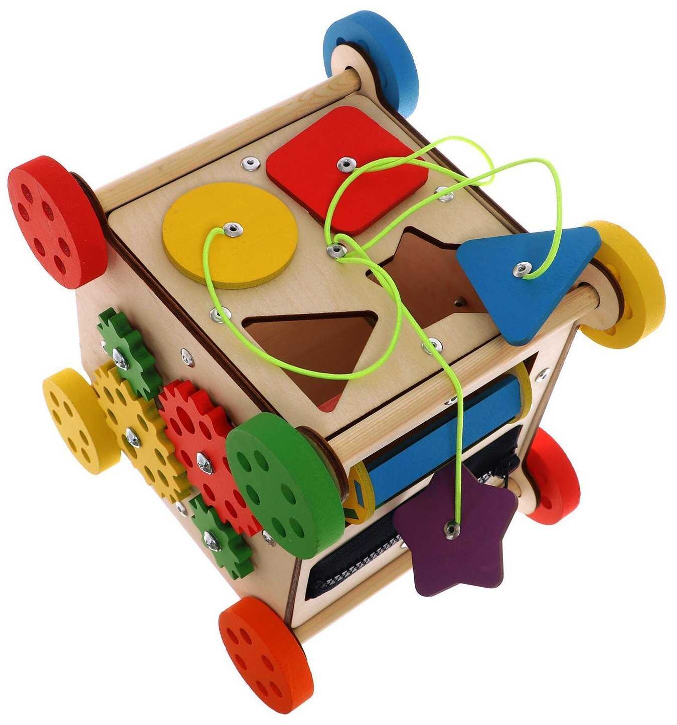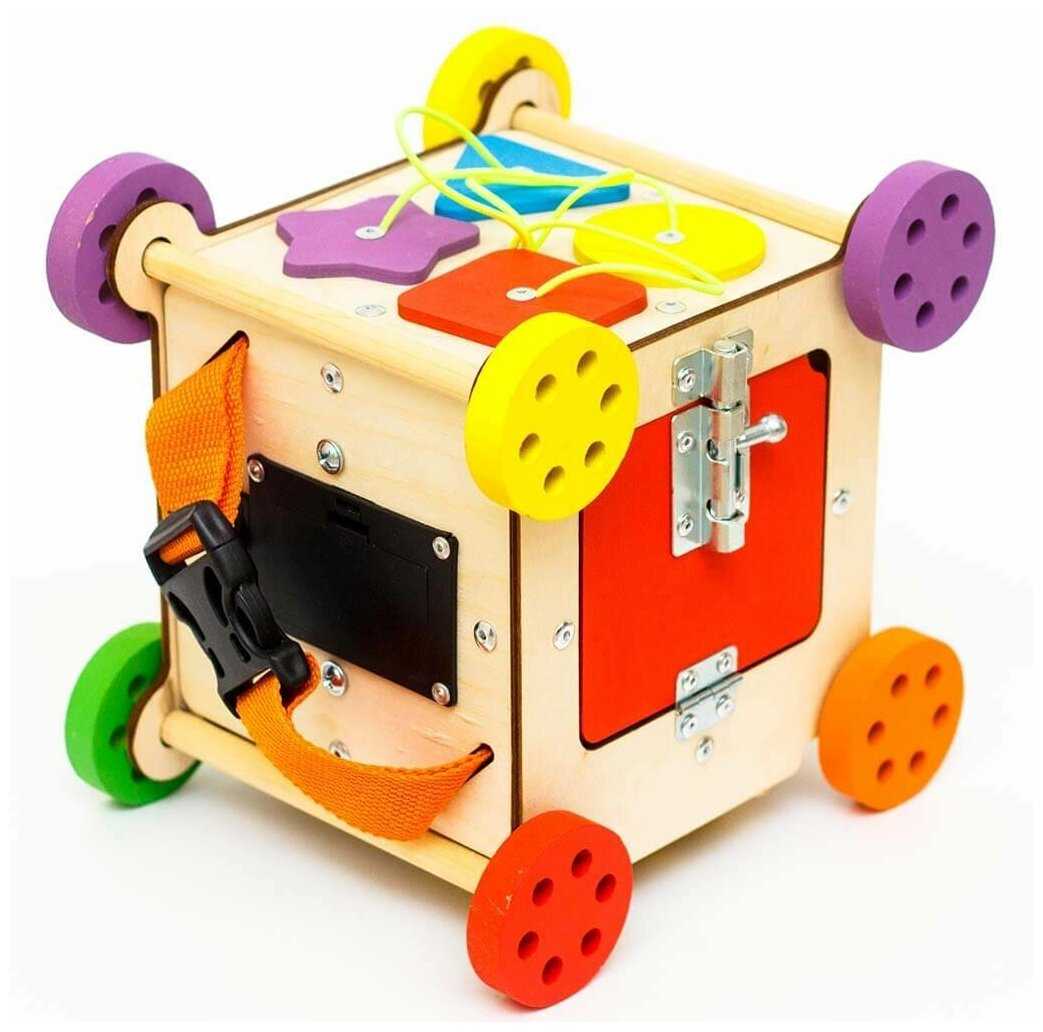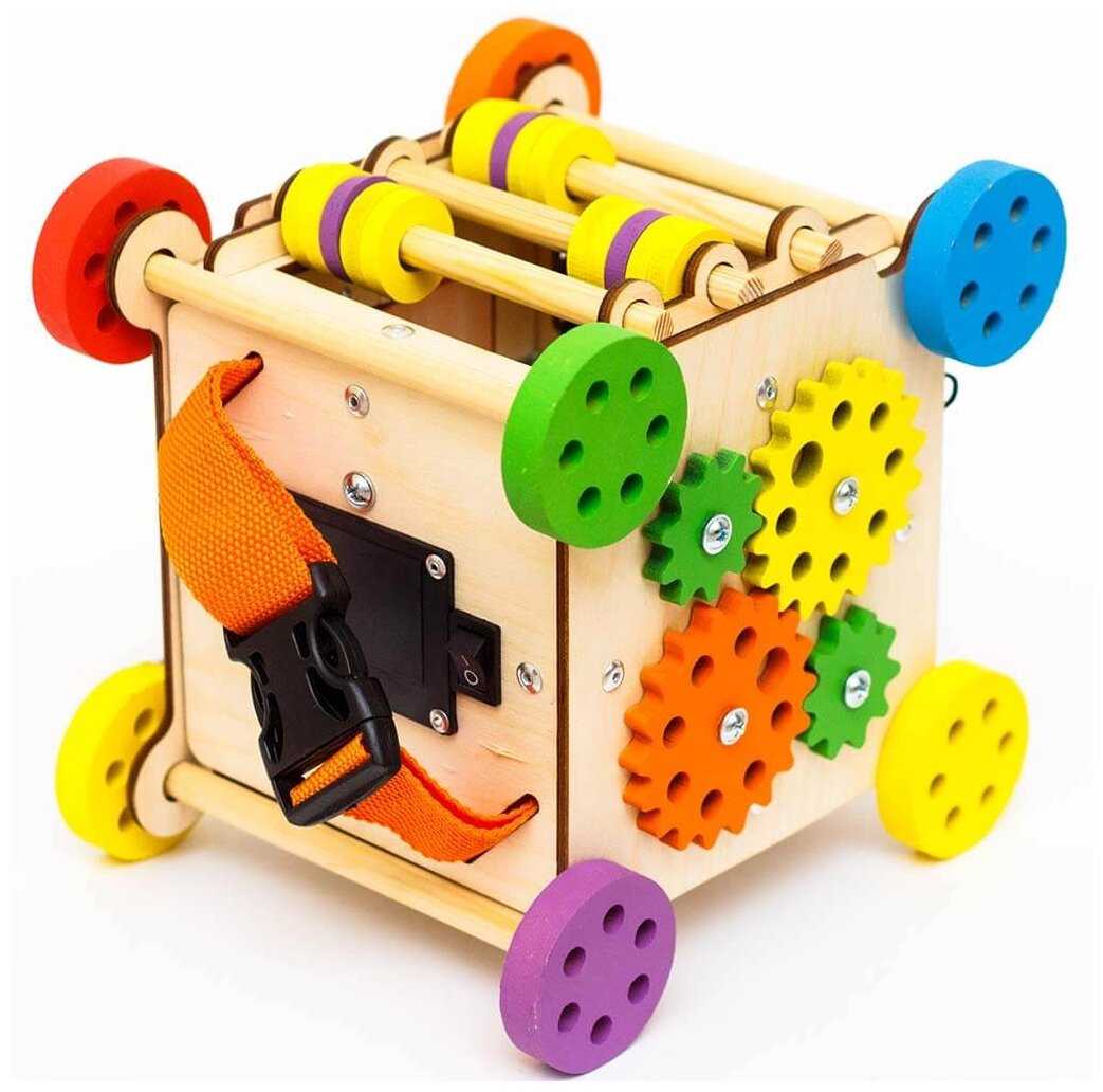 Комплектация : | Наполнение: 1-я сторона: геометрический сортер, 2-я сторона: дверца с шпингалетом, 3-я сторона: счеты, 4-я сторона: музыкальный барабан и молния, 5-я сторона: шестеренки, 6-я сторона: стропа с фастексом и включатель света. |