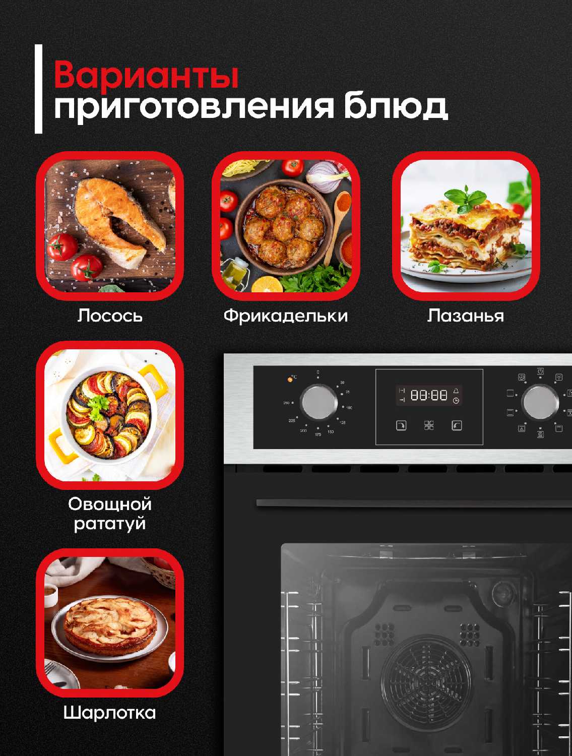 - + Удобный духовой шкаф. Печёт отлично! Все режимы устроили.
