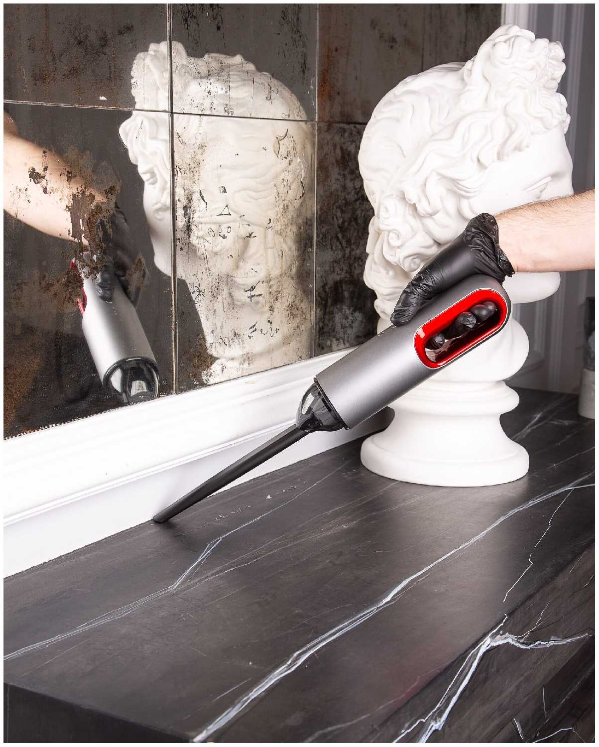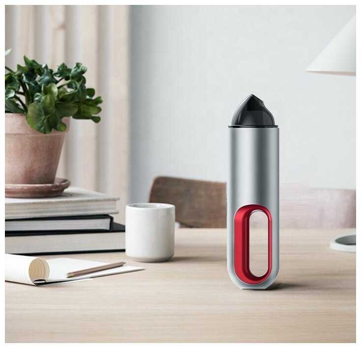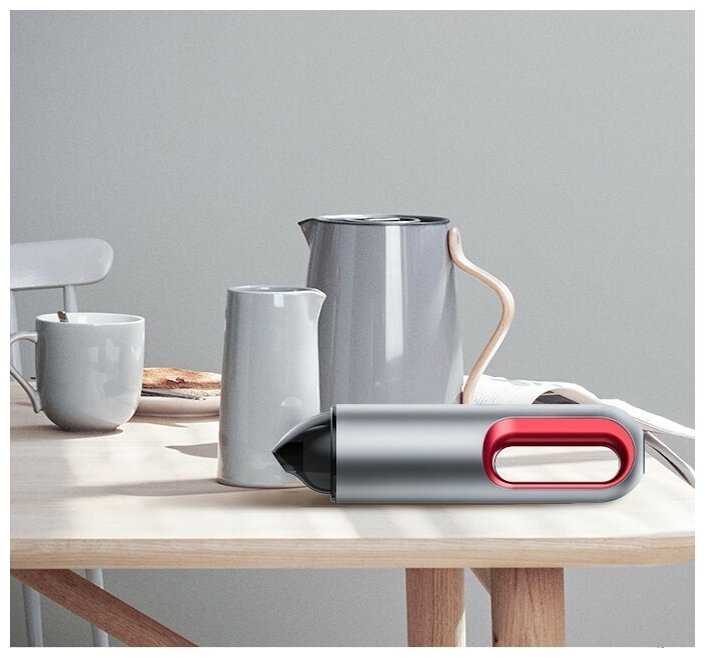 - + Очень легкий, стильный и удобный в руке пылесос. В комплекте есть короткая щетка и длинная. Есть шланг для выдувания пыли из труднотоступных мест. Порадывала всасываемость, мы думали будет похуже. Дотаточно тихий во время раьоты по сравнению с аналогами.