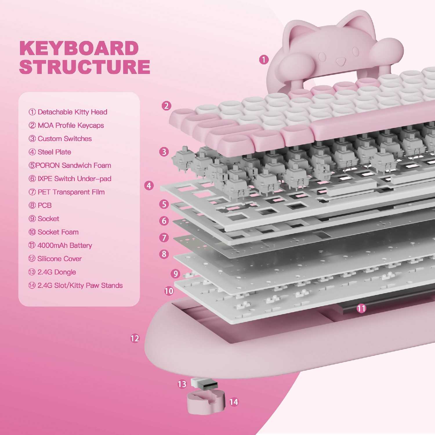 - + внешний вид, звучание, очаровательные кейкапы, много видов подсветки, ооооочень приятная тактильно