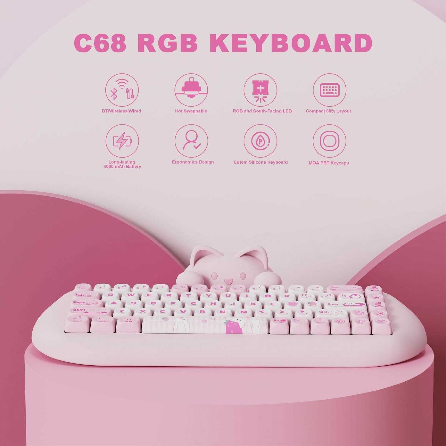 — Механическая купить на озоне для!! - - YUNZII C68, розовая 65% механиче!!