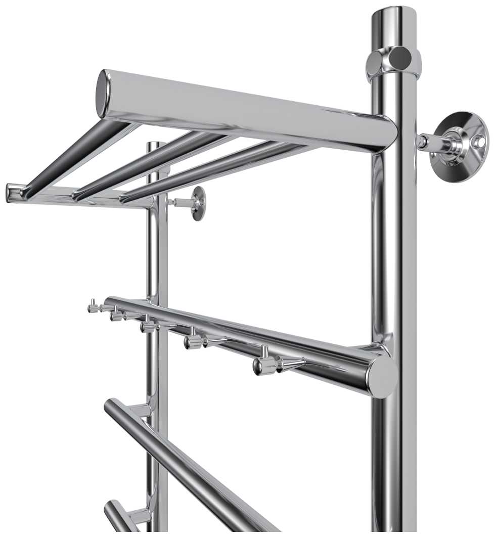 - + Очень удобный полотенцесушитель с крючками и полкой.