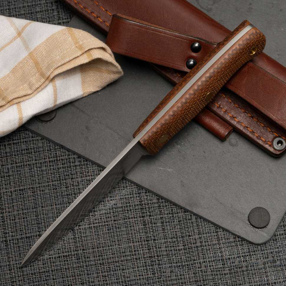 Очень уж расхваливают все Бушкрафт и его заточку конвекс. Сталь VG-10 тоже хвалят. Поддался соблазну и купил. Но особых восторгов от обладания нет. По внешке это просто хороший и качественный кухонник, нет в нем чего-то такого, задора что-ли ) Ну пусть лежит, может пригодится когда-нибудь.