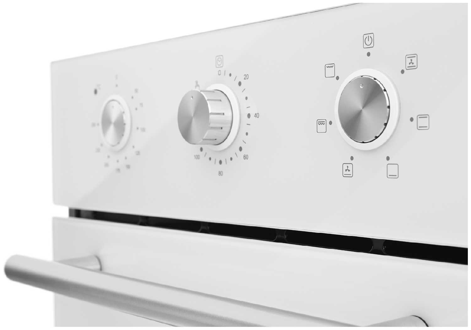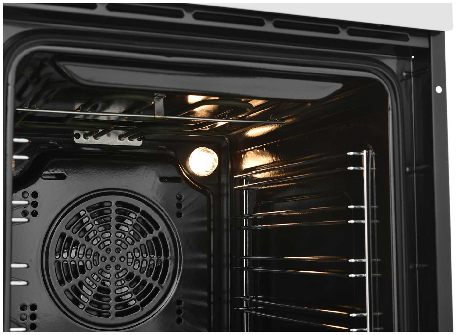 - Встроенный вентилятор распределяет тепло, предотвращая подгорание краёв блюд (температурный диапазон: 50–250°C).