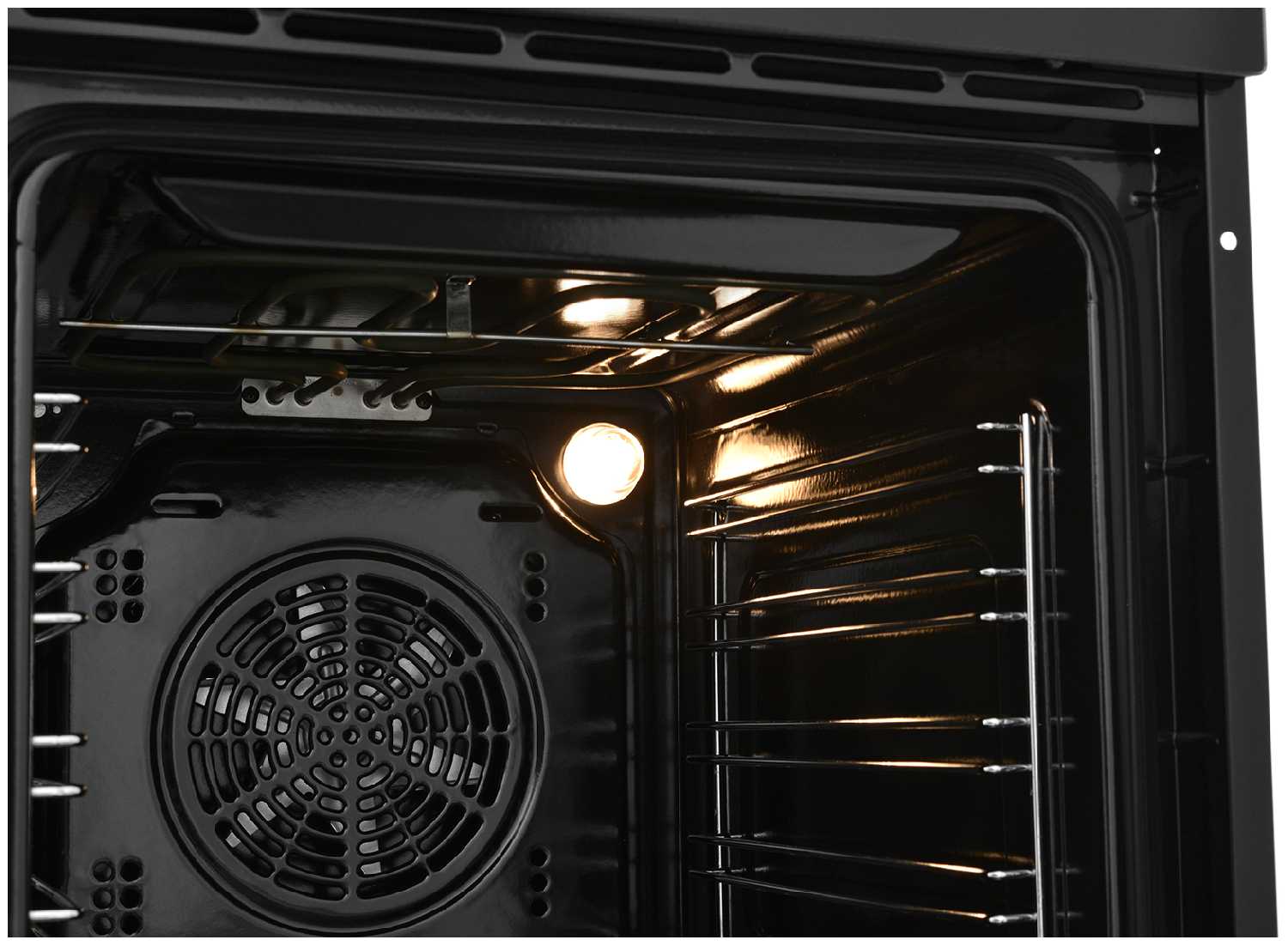 - Съемные внутренние стекла дверцы и эмалированное покрытие камеры легко очищаются от жира.