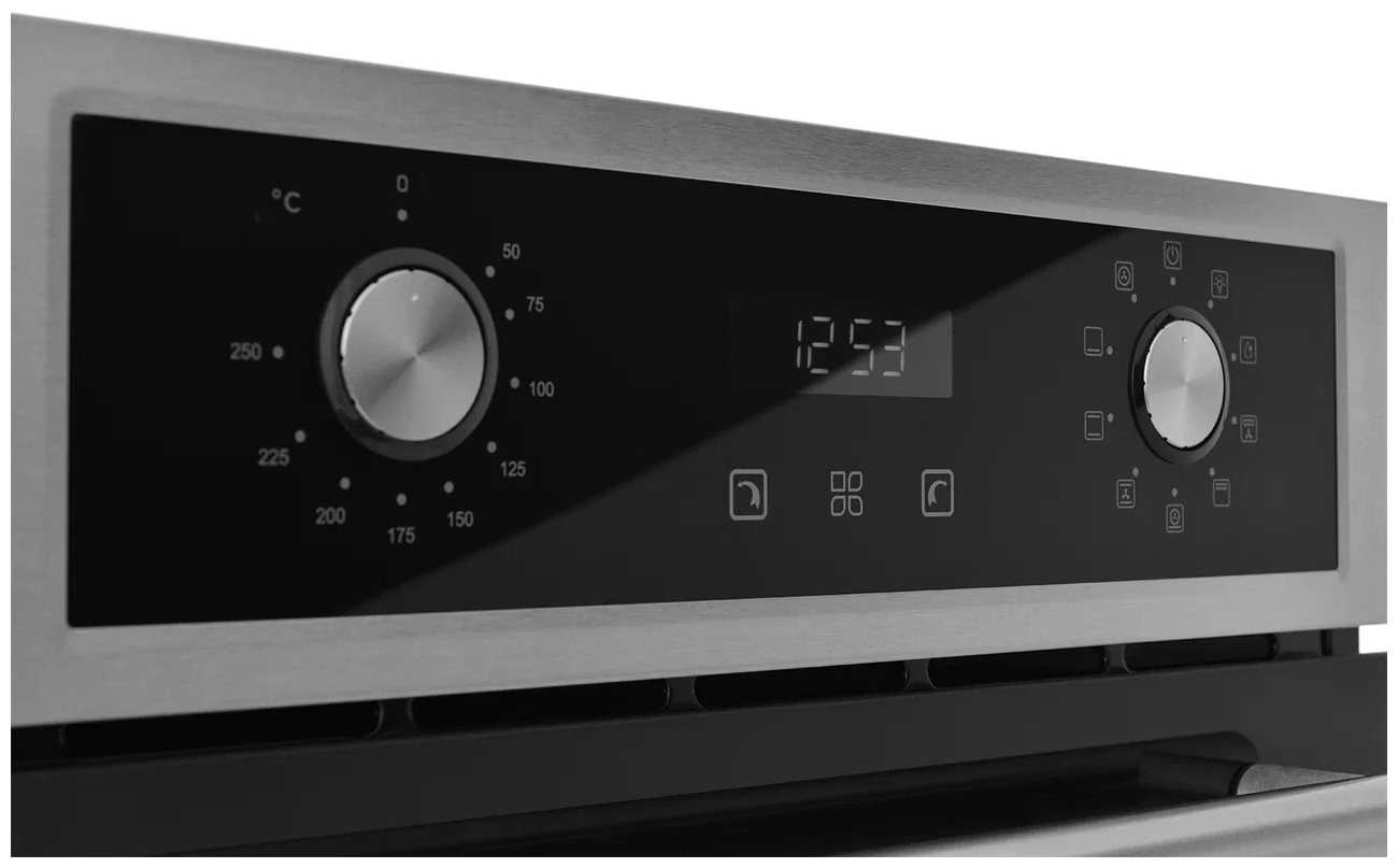 Управление духовкой очень простое и интуитивно понятное есть большой дисплей с удобным меню. Настройки температуры и времени приготовления меняются быстро и легко. Отдельно хочу отметить наличие таймера, часов и будильника это очень удобные и полезные функции, которые я активно использую в процессе готовки.