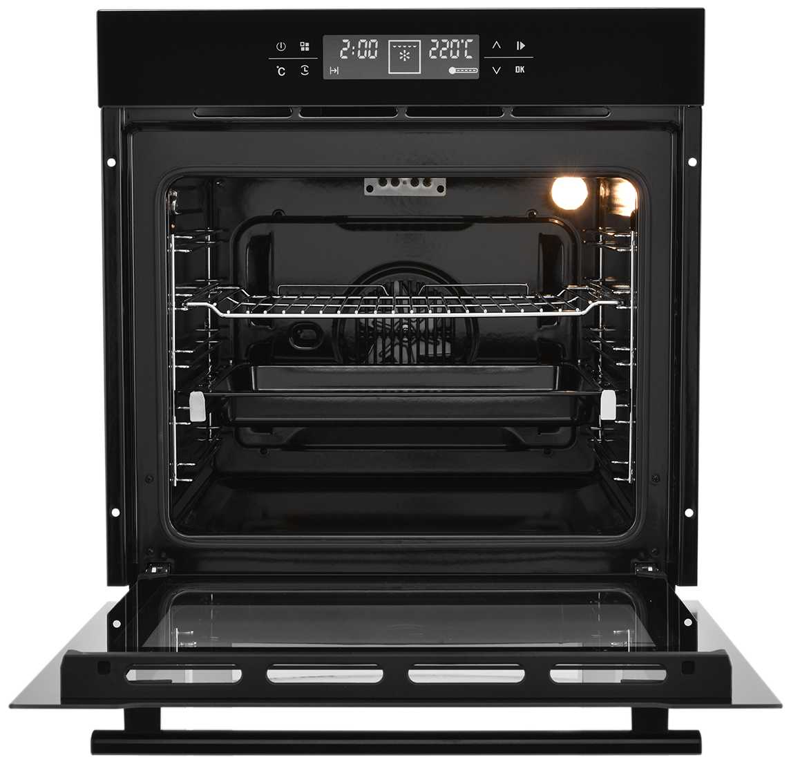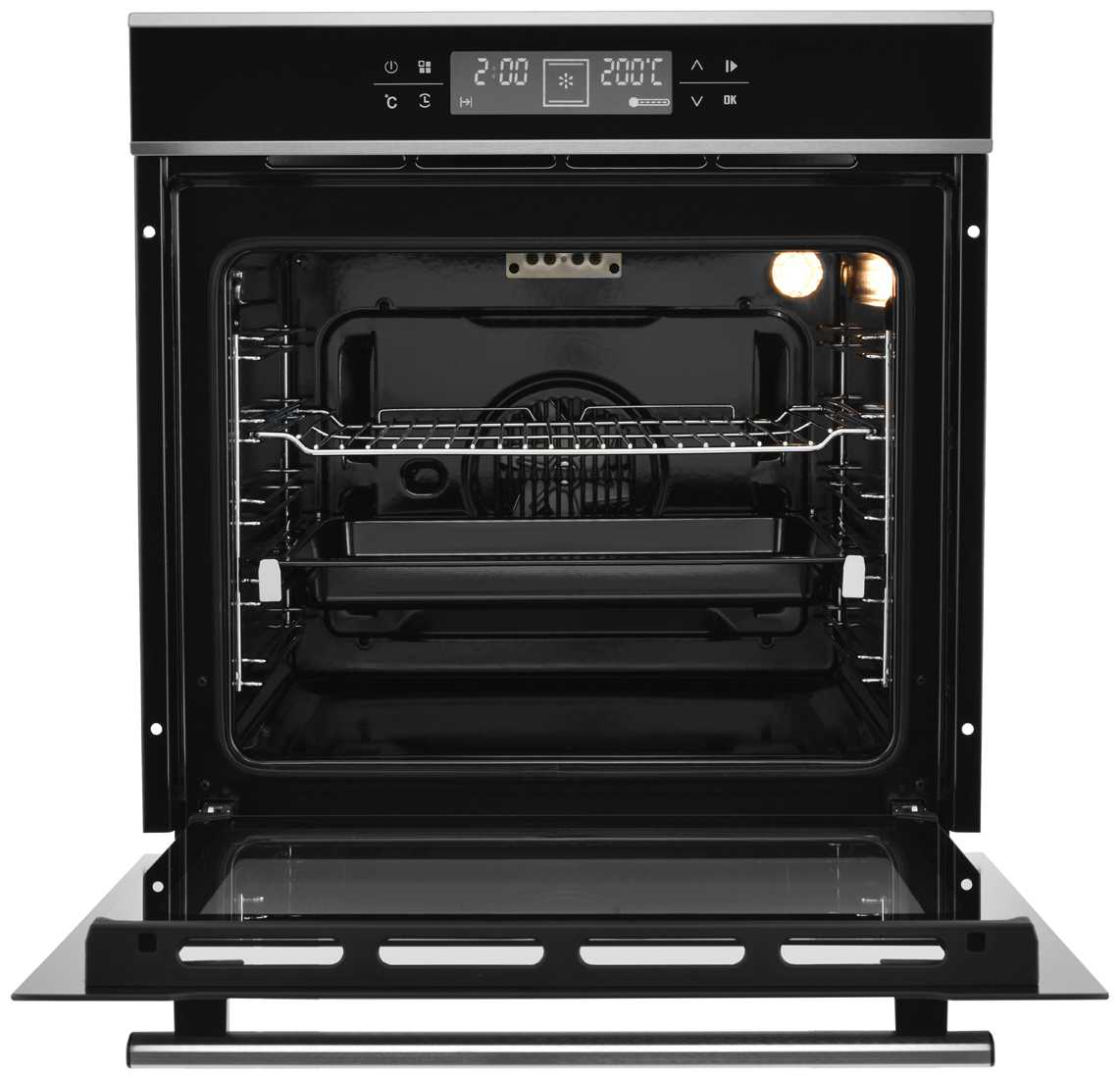 - + Вместительная духовка с конвекцией и сенсорным управлением. Управление очень удобное, можно быстро выставить все настройки и режим. В духовке есть встроенный термощуп, он также включается через панель. Греет духовка равномерно, за время использования еще ничего не пригорело.