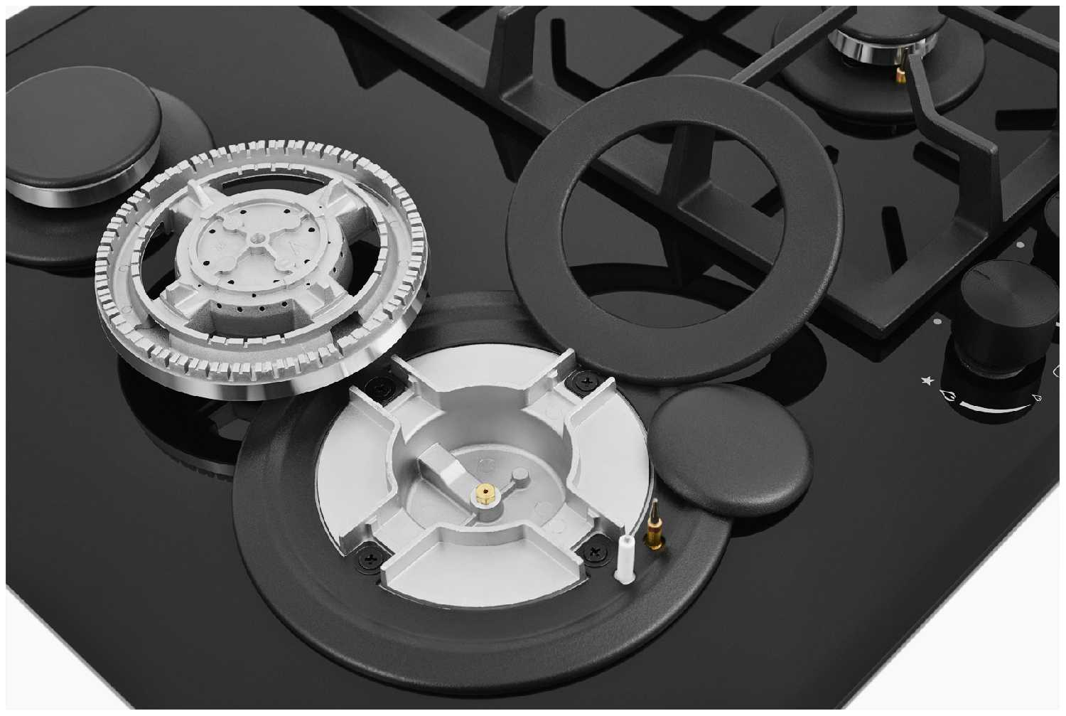 - + Приобрела для своей домашней мастерской, где делаю торты и кейтеринг. Четыре конфорки — то, что нужно, особенно когда нужно одновременно варить сироп, пастеризовать крем и жарить орешки. WOK-конфорка — отдельное удовольствие: мощная, быстро прогревает посуду. Очень нравится, как выглядит — чёрное стекло с массивными решётками смотрится по-настоящему профессионально.