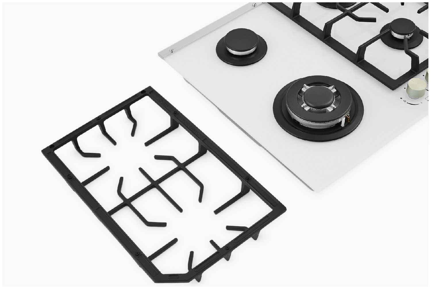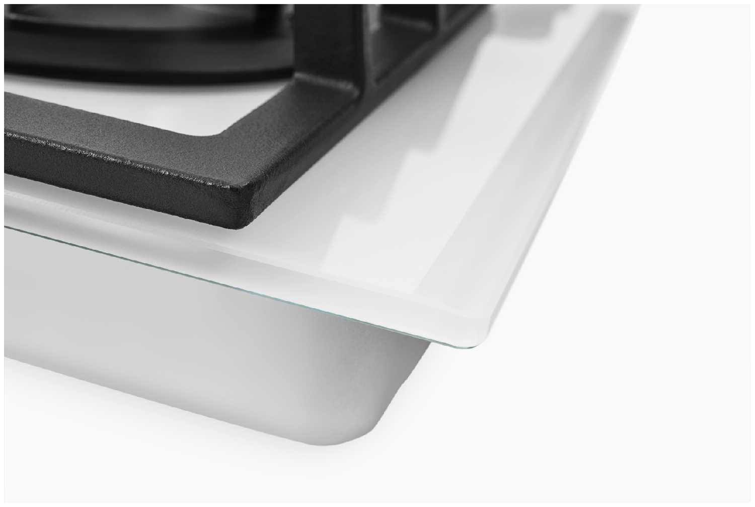 - + Выбрал скорее по эстетике — белое стекло отлично вписалось в светлую студийную кухню, где иногда устраиваем фуд-съёмки. Но оказалось, что она не только красивая, но и шустрая: четыре конфорки, одна из них с тройным пламенем — идеально для сковородок и воков. Решётки чугунные, тяжёлые — надёжно держат даже большие кастрюли.