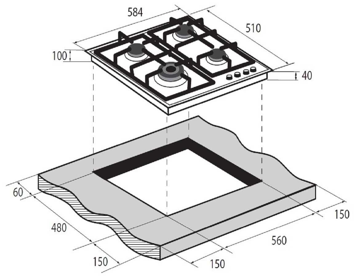 - Встраивается в столешницу от 30 мм, комплект включает жиклеры для баллонного газа.