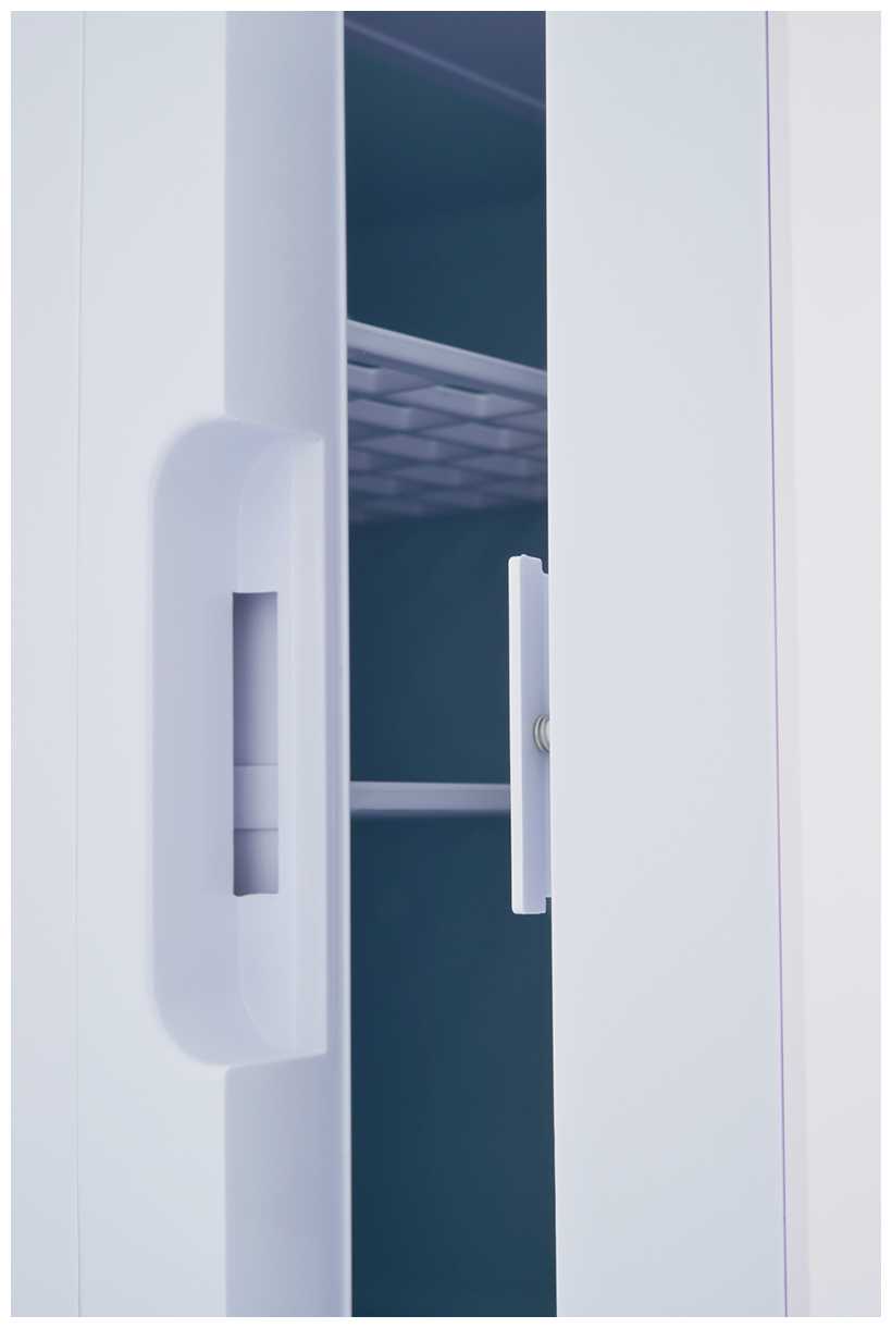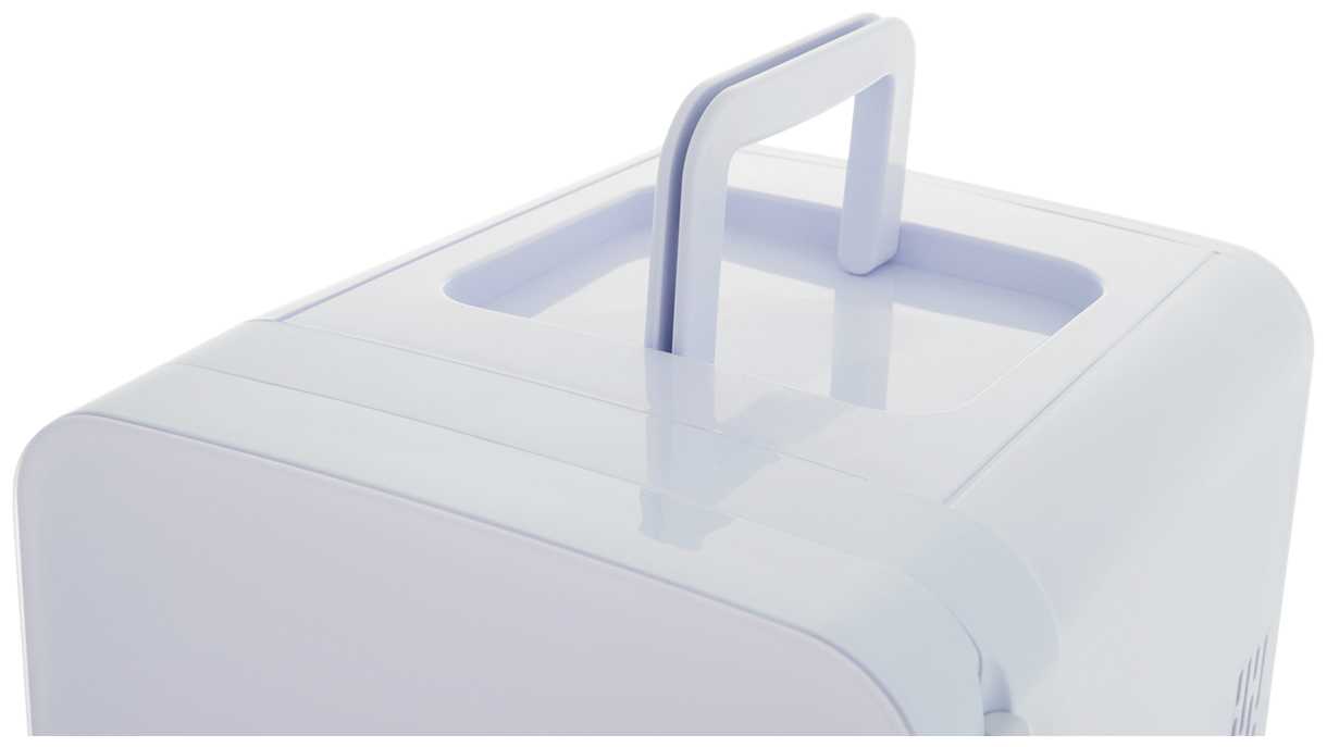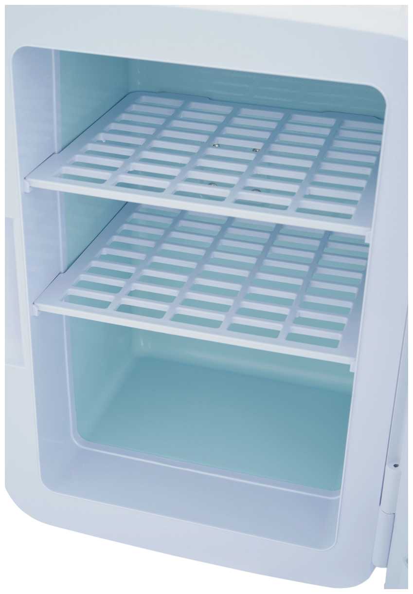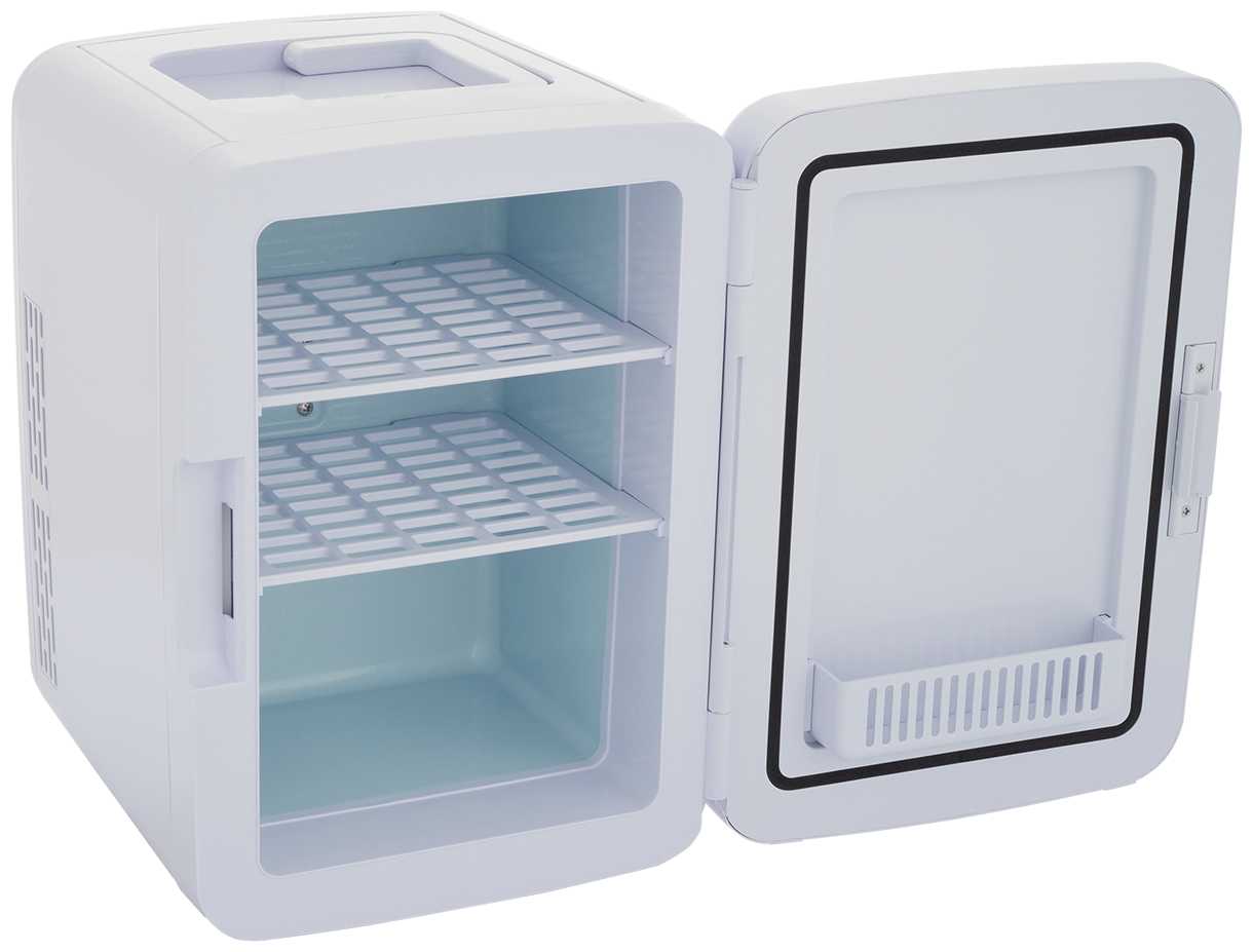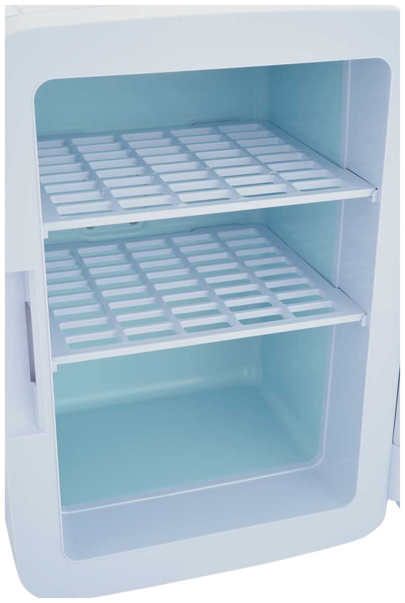 - Объем 10 литров с двумя пластиковыми полками и отделением на дверце позволяет хранить до 8 стандартных баночек крема, сывороток, патчей и небольших лекарств.