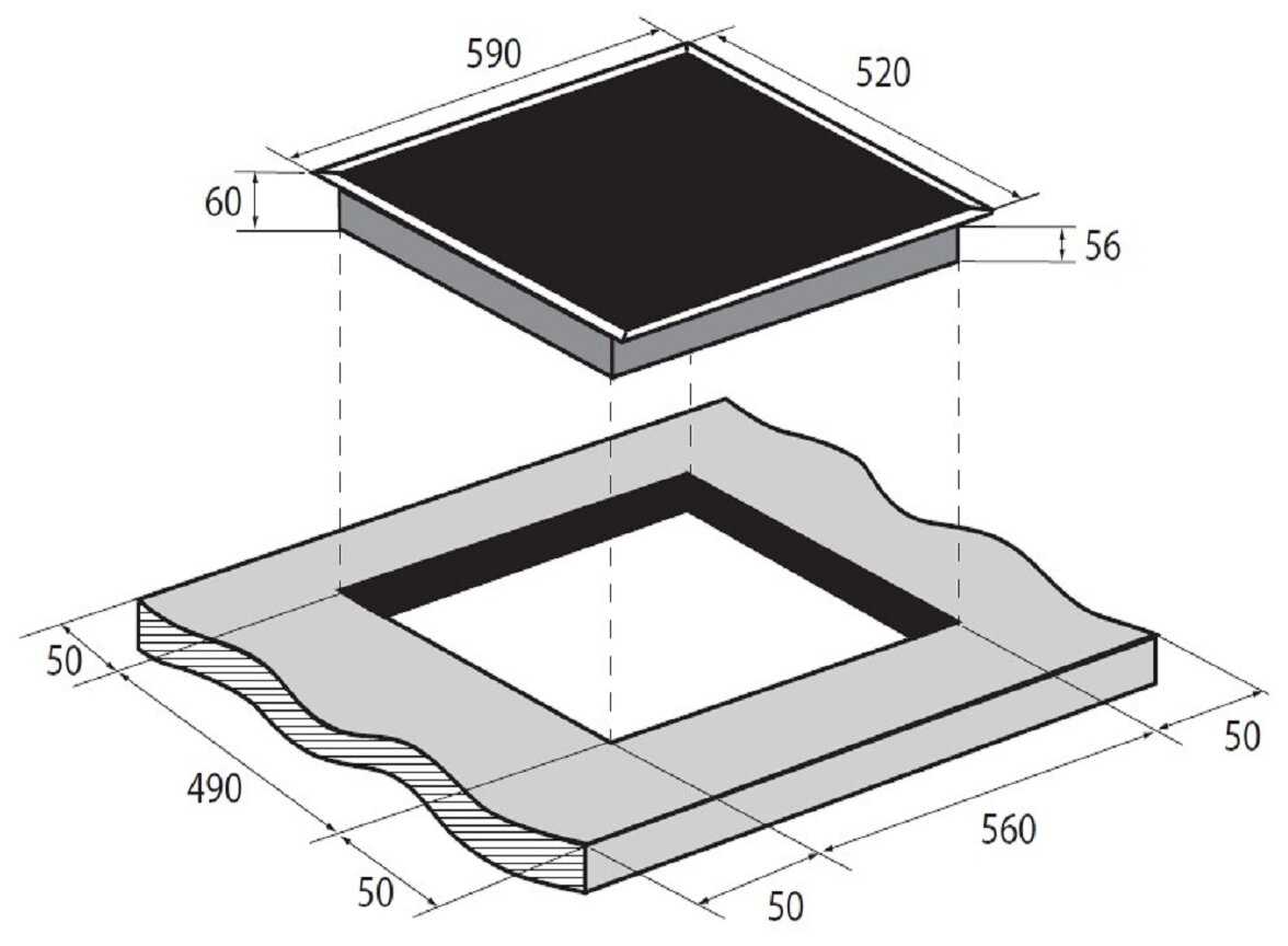 - Вписывается в стандартные вырезы столешниц.