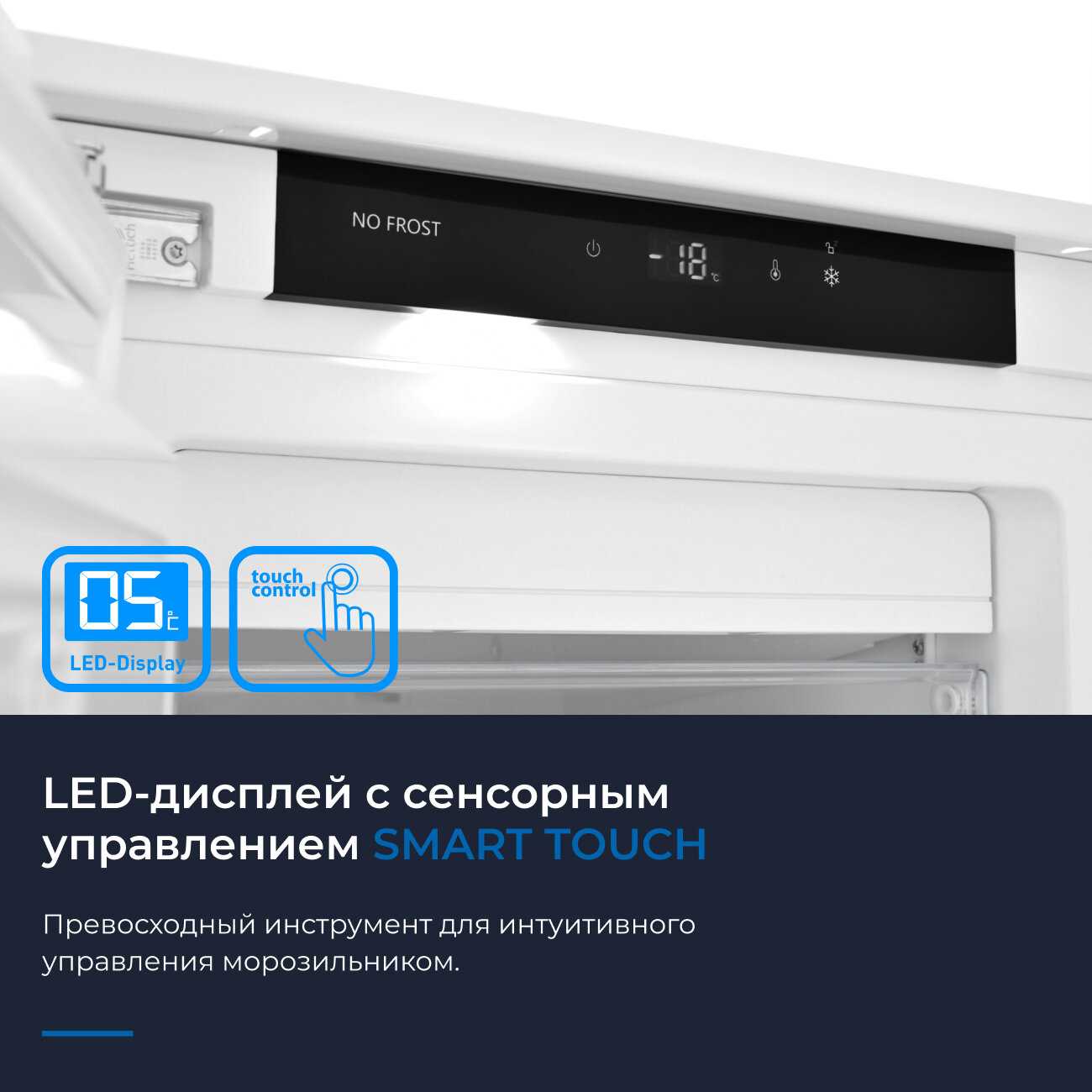 - + Морозильник небольшой, но вместительный. No Frost система просто спасение, не надо больше бороться с наледью. Сенсорное управление легко освоить.