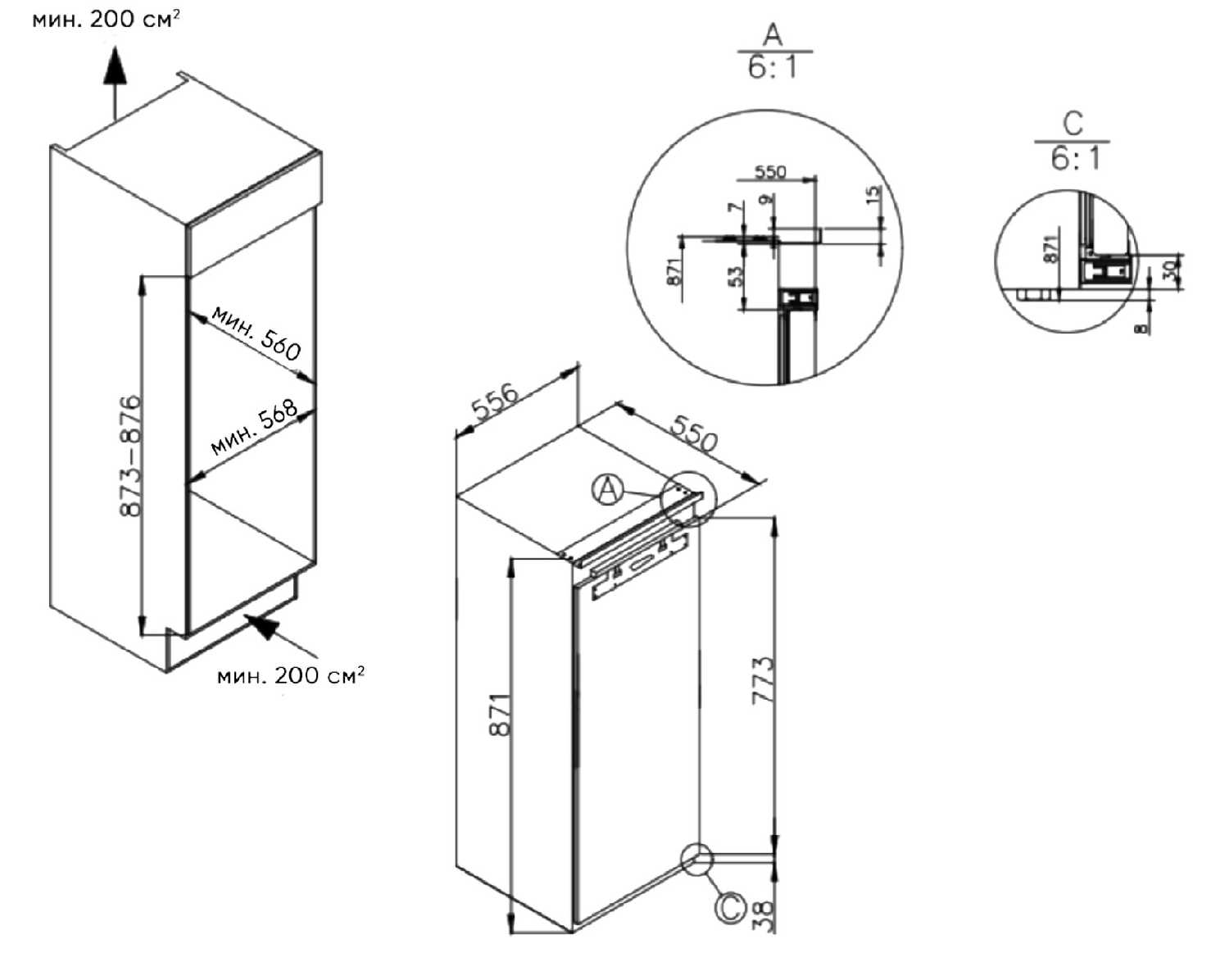 - + Есть всё, что нужно - режим суперзаморозки, тихая работа, система No Frost. Высота ниши составляет 87,6 см, что позволяет встроить морозильник в обычный шкафчик.