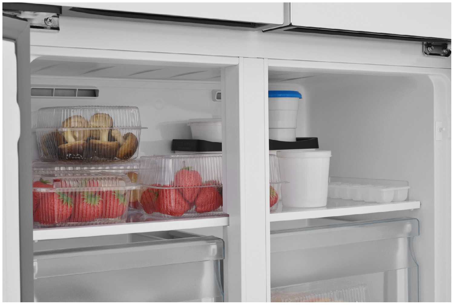 - + Π‘Π²Π΅ΠΆΠ΅ΡΡΡ ΠΏΡΠΎΠ΄ΡΠΊΡΠΎΠ² ΠΏΠΎΠ΄Π΄Π΅ΡΠΆΠΈΠ²Π°Π΅ΡΡΡ Π±Π΅Π· ΠΈΠ·ΠΌΠ΅Π½Π΅Π½ΠΈΠΉ, Π΄Π°ΠΆΠ΅ Π΅ΡΠ»ΠΈ Ρ ΠΎΠ»ΠΎΠ΄ΠΈΠ»ΡΠ½ΠΈΠΊ ΠΏΠ»ΠΎΡΠ½ΠΎ Π·Π°Π±ΠΈΡ. Π ΠΌΠΎΡΠΎΠ·ΠΈΠ»ΡΠ½ΠΎΠΉ ΠΊΠ°ΠΌΠ΅ΡΠ΅ ΠΏΡΠ΅Π΄ΡΡΠΌΠΎΡΡΠ΅Π½Π° ΠΎΠ±ΡΠ°Ρ ΠΏΠΎΠ»ΠΊΠ°, ΡΡΠΎ ΡΠ΄ΠΎΠ±Π½ΠΎ Π΄Π»Ρ Ρ ΡΠ°Π½Π΅Π½ΠΈΡ ΠΊΡΡΠΏΠ½ΠΎΠ³Π°Π±Π°ΡΠΈΡΠ½ΡΡ ΠΏΡΠΎΠ΄ΡΠΊΡΠΎΠ², Π° ΡΠ΅ΡΡΡΠ΅ Π²ΡΠ΄Π²ΠΈΠΆΠ½ΡΡ ΡΡΠΈΠΊΠ° ΠΏΠΎΠ·Π²ΠΎΠ»ΡΡΡ ΠΎΡΠ³Π°Π½ΠΈΠ·ΠΎΠ²Π°ΡΡ Π²ΡΡ ΡΠ°ΠΊ, ΡΡΠΎΠ±Ρ Π»Π΅Π³ΠΊΠΎ Π½Π°ΠΉΡΠΈ Π½ΡΠΆΠ½ΠΎΠ΅.