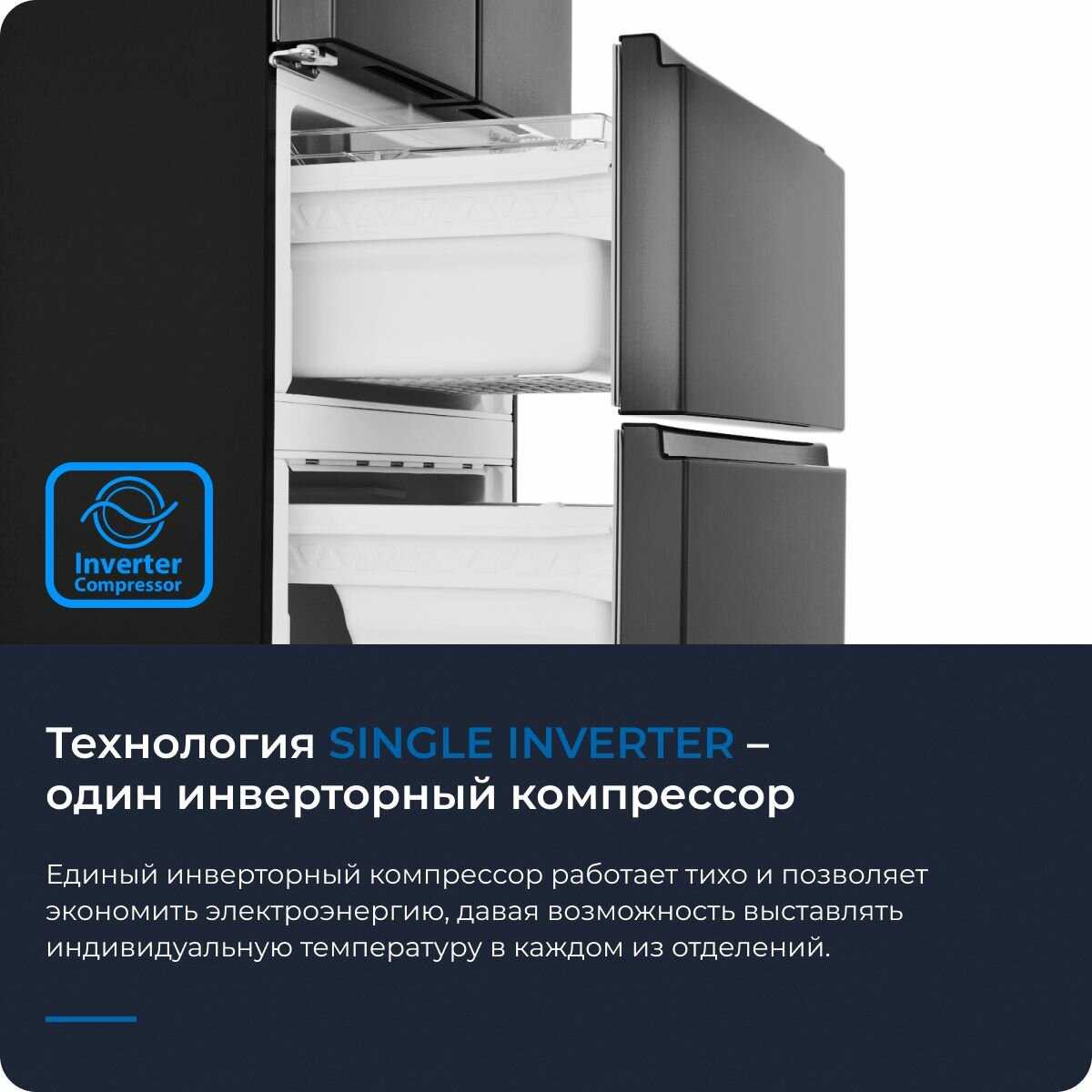 Долго выбирали холодильник и в итоге купили холодильник комбинированный French Door ZRFD361B. И пользуемся с удовольствием. Мне нравится он по эргономике, вроде сам не большой, а вмещается очень много. Удобно, что две двери, не надо много места, чтобы что-то достать, но это удобство надо почувствовать. И самый плюс, всегда хотела морозилку именно чтобы выезжали ящики, а не дверь открывалась. Так вместительнее. Холодильник абсолютно тихий. То что холодильник инверторный, это вообще отдельное преимущество.