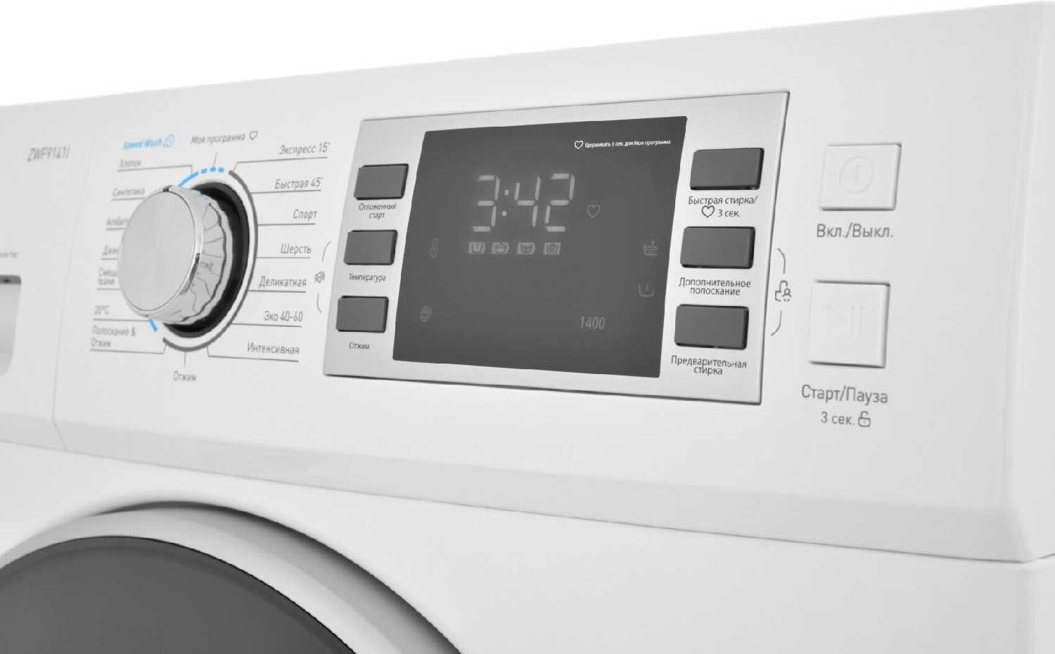 - + Быстрая стирка есть, много прочих вариантов, никаких глюков. Главное дверку закрыть. Особенно нравится дизайн, создателям сего чуда - просто браво. Это шедевр последнего поколения. Вместительность максимальная, есть даже отдельный антибактериальный режим и вариант джинсы.