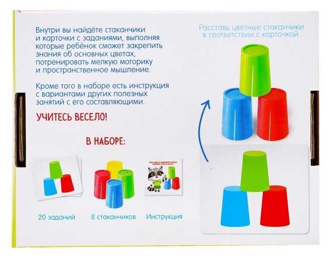 - - На карточке цвет голубой, а стаканчики синие. А так норм., внимание развивает обнозначно!
