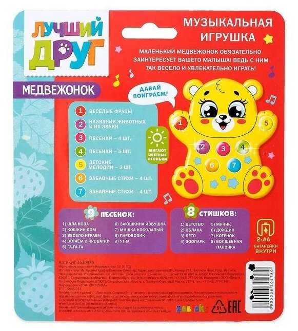 39 отзывов пользователей o Забияка Музыкальная игрушка «Медвежонок», световые и звуковые эффекты