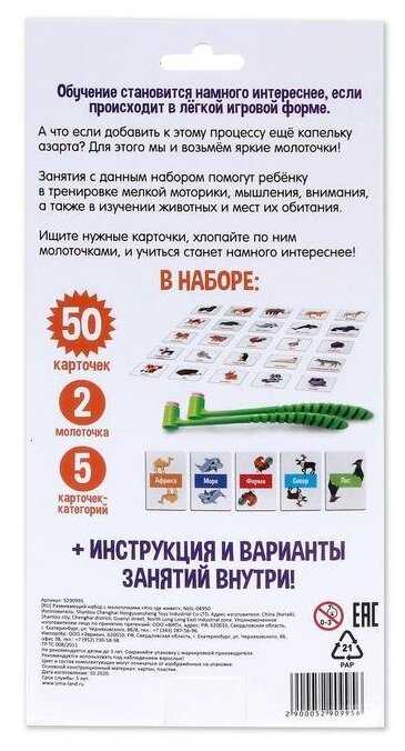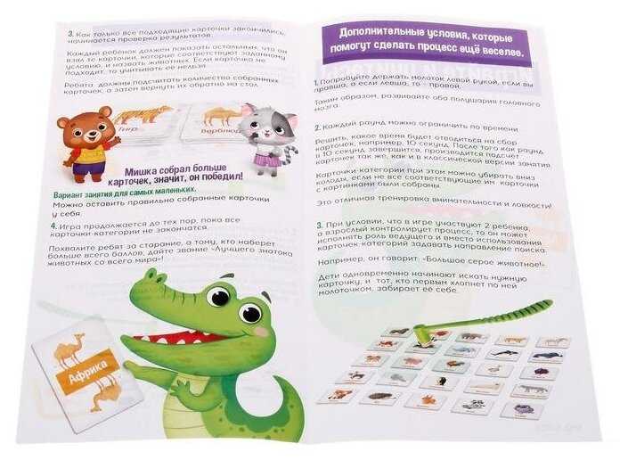 Комплектация : | Молоточек пластмассовый с резиновой присоской: 23 × 2, 5 × 3, 5 см. Карточки картон: 5 × 5 см. Карточки категории: 9 × 6 см. |
