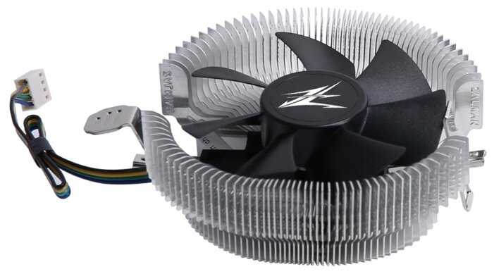 Отличный фирменный кулер ZALMAN. Очень тихий. Заявленные 65 Вт отрабатывает на все 100%, справляется даже со 100 ваттным процессором.