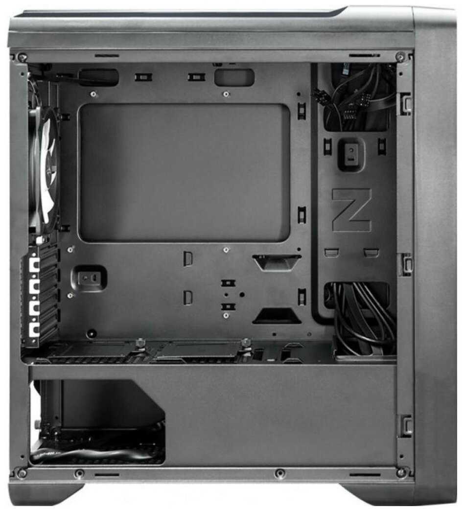 - Отдельный отсек для блока питания и корзины HDD, минимизирующий перегрев кабелей.