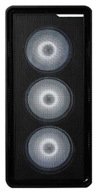 Корпус оснащен четырьмя 120-мм вентиляторами, обеспечивающими сбалансированный воздушный поток при умеренном уровне шума. Пользователи отмечают снижение температур компонентов на 5–10°C по сравнению с закрытыми корпусами, особенно при нагрузке в играх. Вентиляторы подключены через фирменный хаб с четырьмя режимами работы: максимальные обороты с подсветкой, средние обороты с подсветкой, средние обороты без подсветки и полное отключение. Для оптимизации рекомендуется переподключить задний вентилятор напрямую к материнской плате, так как его работа через хаб может ограничивать вытяжку горячего воздуха. -