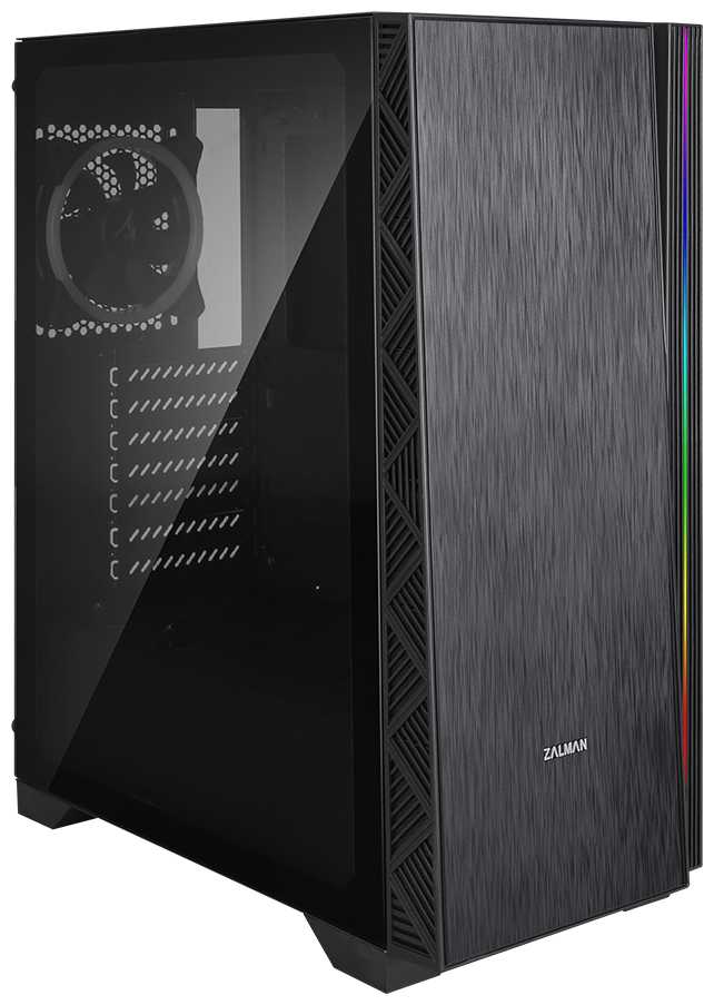 - + Хорошо продуваемый корпус с съемной боковой крышкой из закаленного стекла,3 rgb вентилятора на передней панели,нижнее расположение б/п ,толщина стенок 0,7 мм