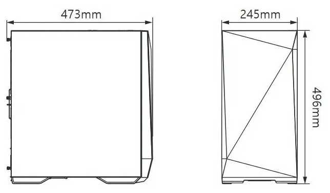 - Ширина корпуса 210 мм не позволяет установить радиаторы СЖО толщиной свыше 55 мм в верхнее положение.