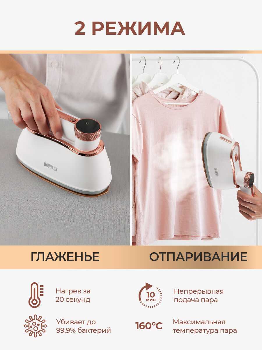- + Компактный, лёгкий, простой и понятный в использовании. Длинный шнур это хорошее преимущество. Очень удивил результат с первого применения. Хорошая и удобная функция поворота гладящей поверхности. Можно подумать, что просто ради понта придумали, но нет, при вертикальном отпаривании рубашек очень пригодилось, гораздо удобнее проходи́ться быстрее по все поверхности, особенно с задней стороны рубашки.