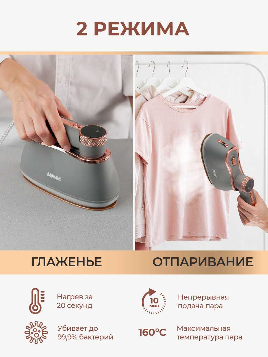 - + Удобный, лёгкий, хорошо гладит и отпаривает.