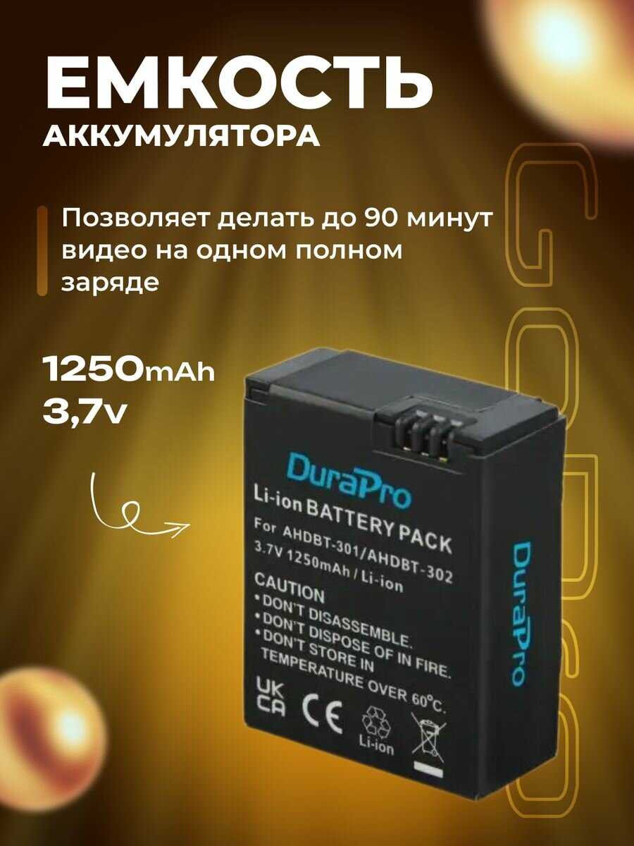 Отзывы о Аккумулятор DuraPro для GoPro Hero 3/3+ (1250 mAh)