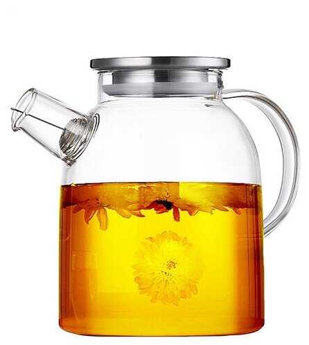 Kimberly Стеклянный чайник для заваривания с ситечком и крышкой из нержавеющей стали, 1 800 мл.