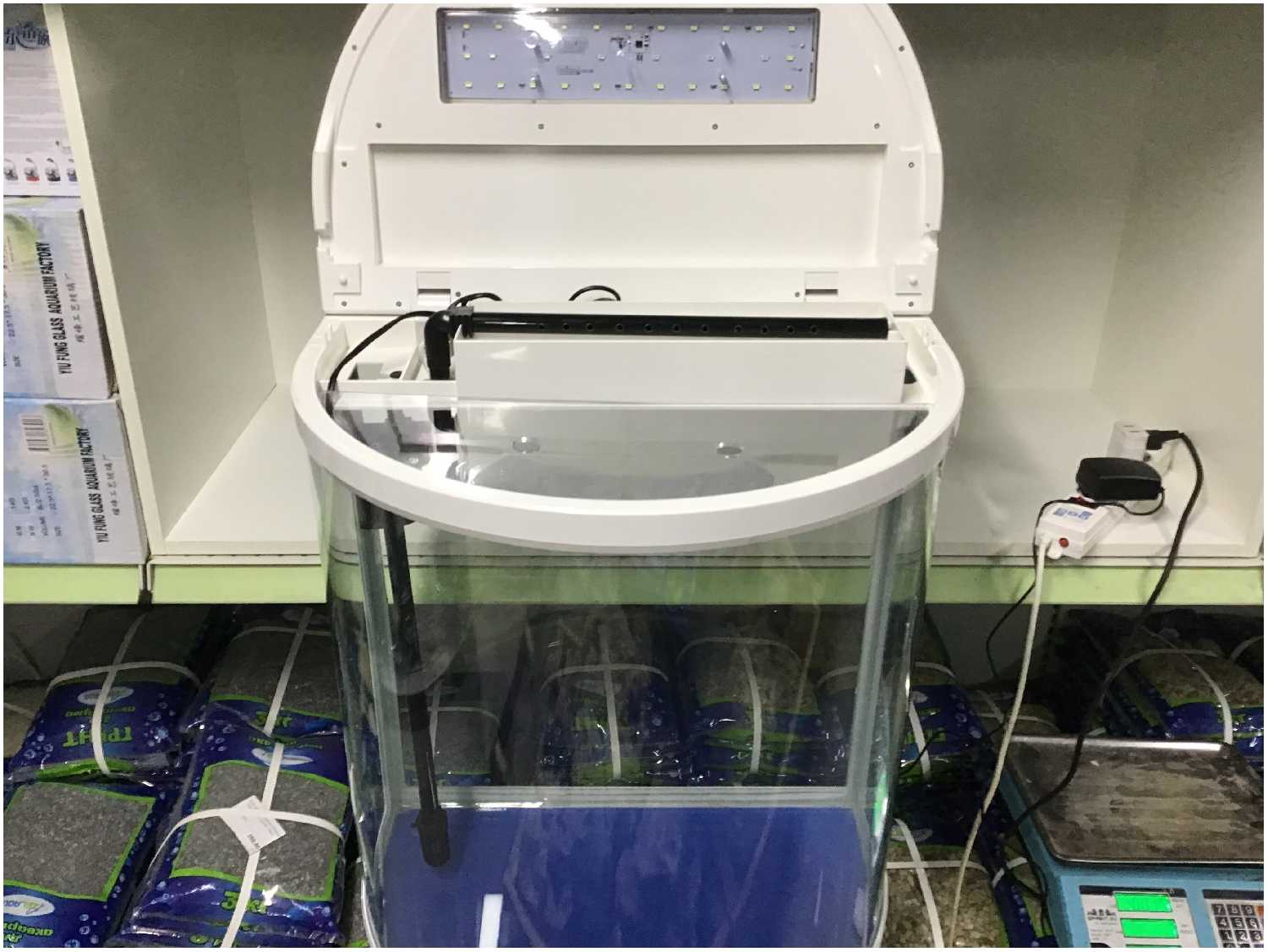- + Потрясающий аквариум. Очень надеюсь, что послужит долго. Выглядит потрясающе. Свет очень нежный, рыбок не раздражает. Фильтр забирает воду из бассейна и через фильтр вверху в крышке водопадом сливает обратно в аквариум, он очень тихий и ненавязчивый. Фильтр слева выкидывает кислород в воду.